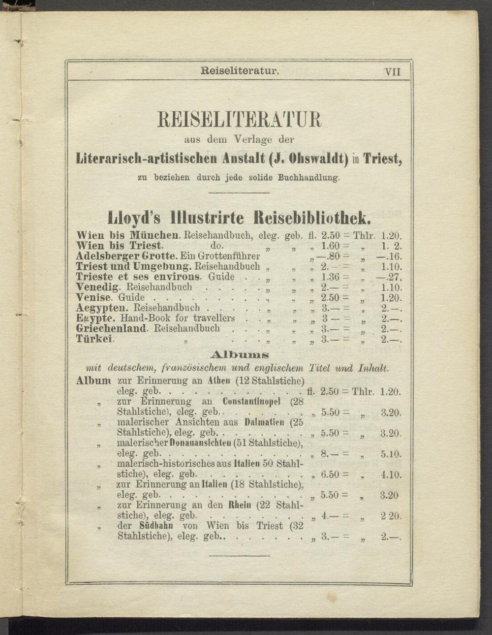 Wien bis München. Reisehandbuch, eleg. geh. fl. 2.50 Wien bis Triest. do. „