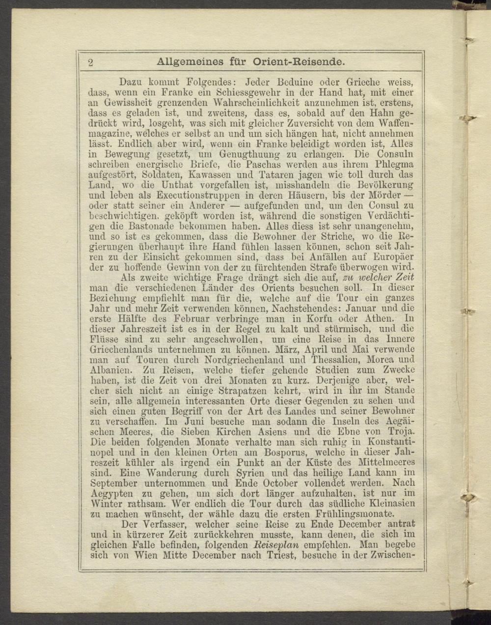 Der Verfasser, welcher seine Reise zu Ende December antrat und in kürzerer Zeit zurückkehren musste, kann denen, die sich im gleichen Falle befinden, folgenden lieiseplan empfehlen. Man begebe sich von Wien Mitte December nach Triest, besuche in der Zwischen- |