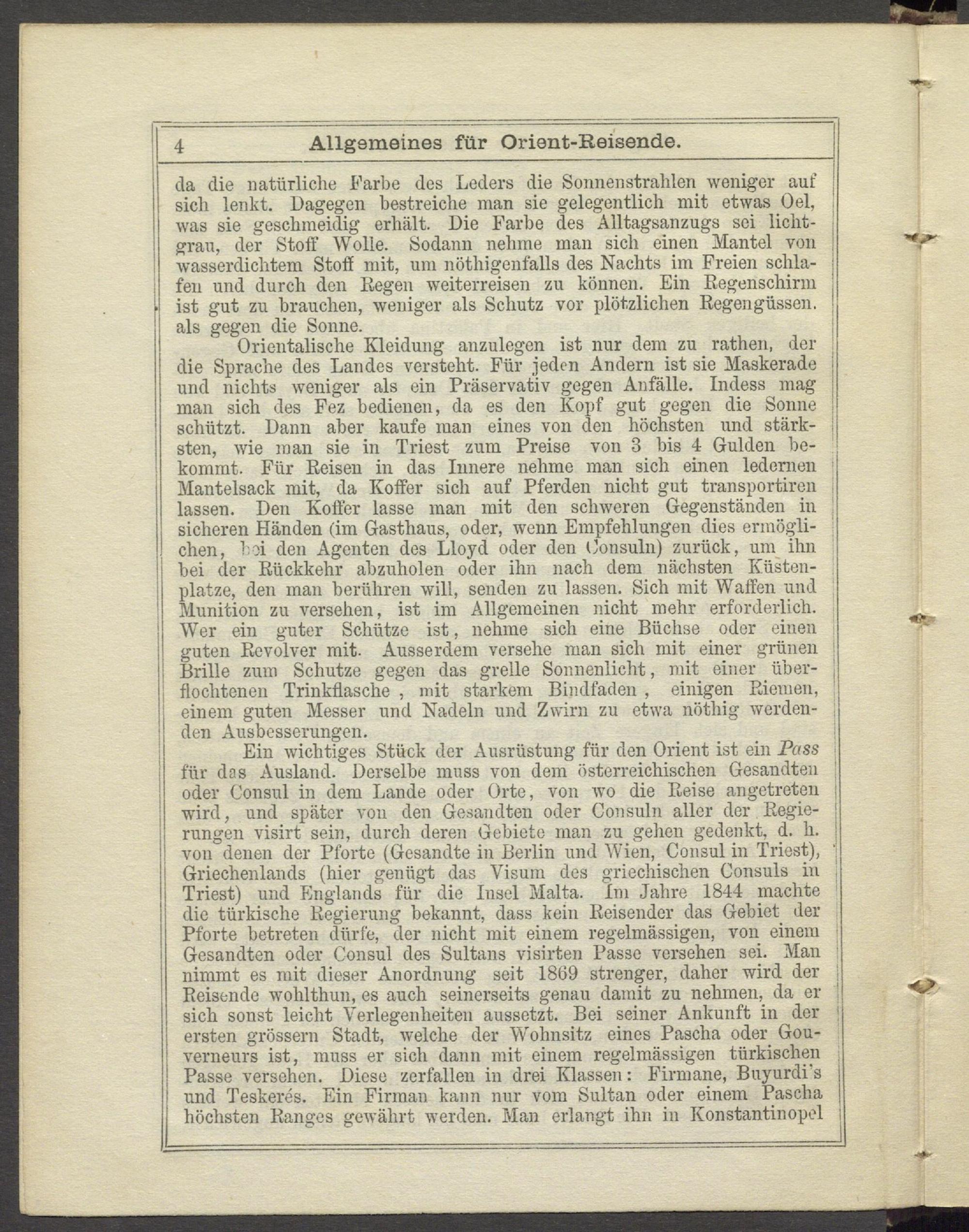 Ein wichtiges Stück der Ausrüstung für don Orient ist ein Pass für das Ausland. Derselbe muss von dem österreichischen Gesandten '