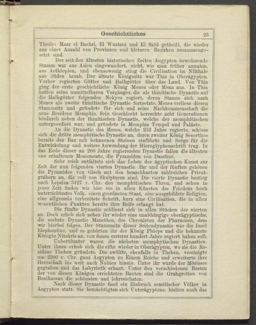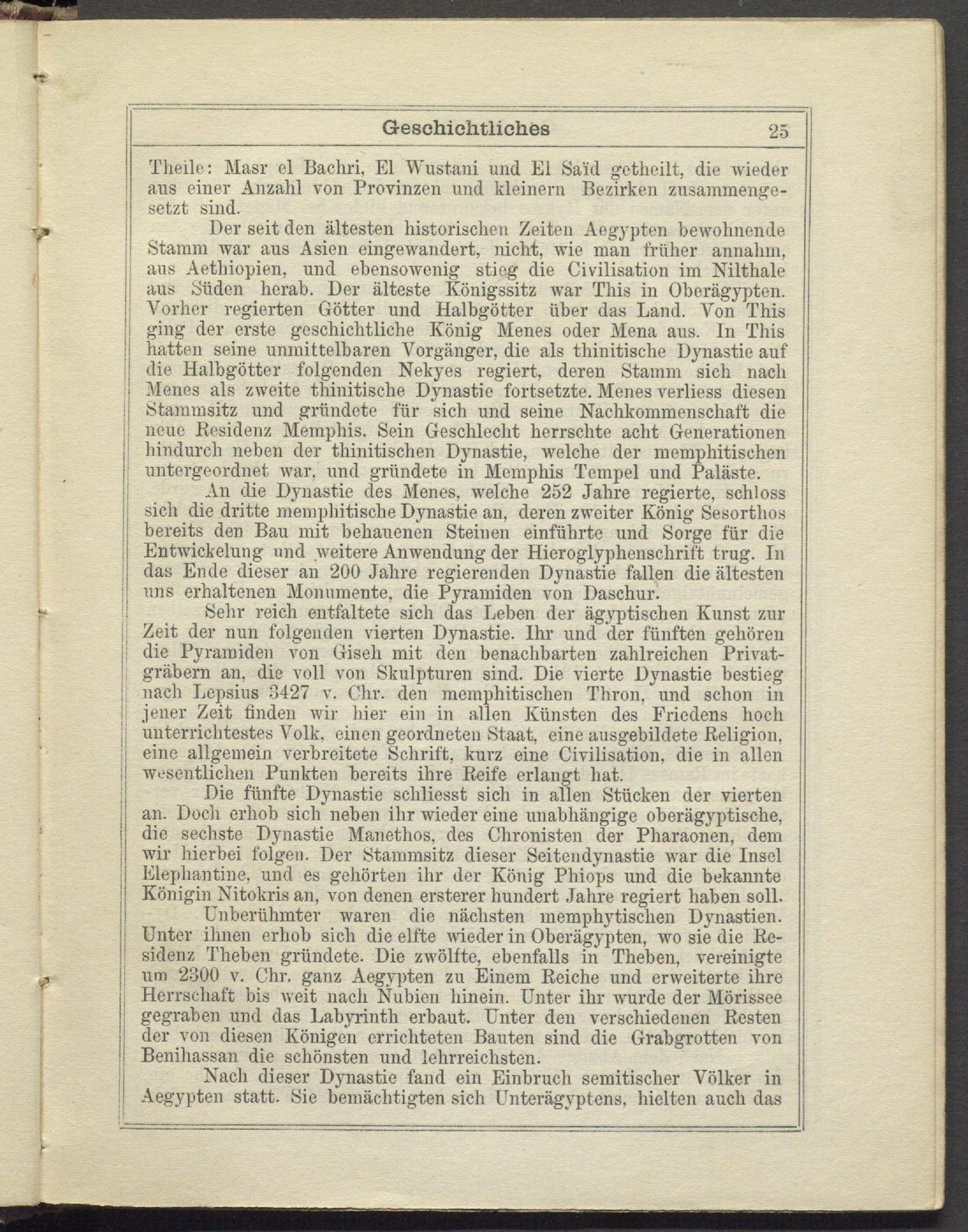 Der seit den ältesten historischen Zeiten Aegypten bewohnende ; Stamm war aus Asien eingewandert, nicht, wie man früher annahm, j aus Aethiopien, und ebensowenig stieg die Civilisation im Mithaie | aus Süden herab. Der älteste Königssitz war This in Oberägypten.