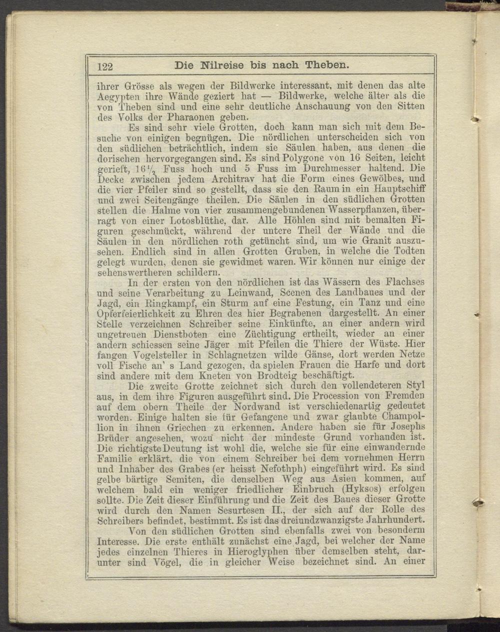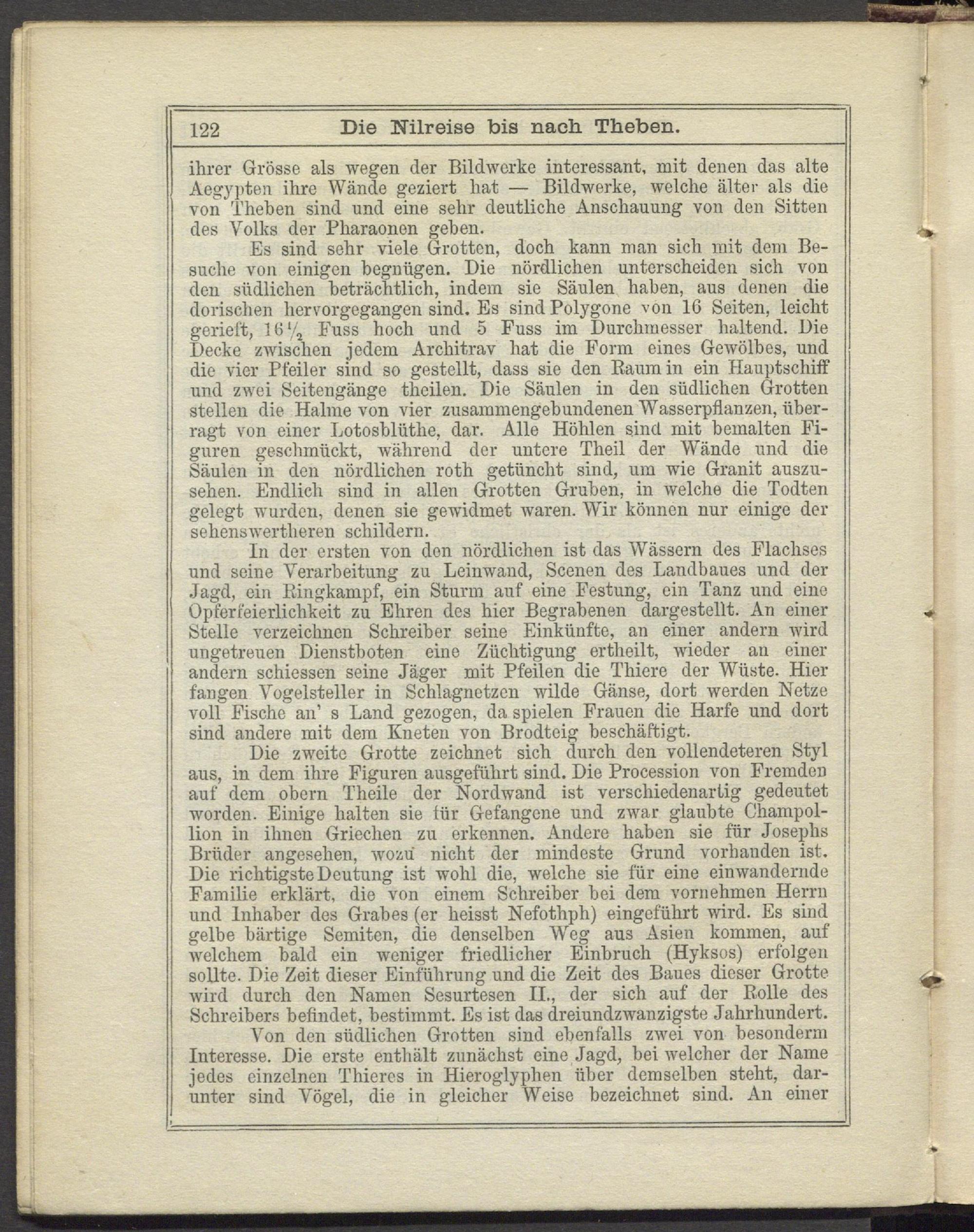 ihrer Grösse als wegen der Bildwerke interessant, mit denen das alte Aegypten ihre Wände geziert hat — Bildwerke, welche älter als die von Theben sind und eine sehr deutliche Anschauung von den Sitten des Volks der Pharaonen geben.
