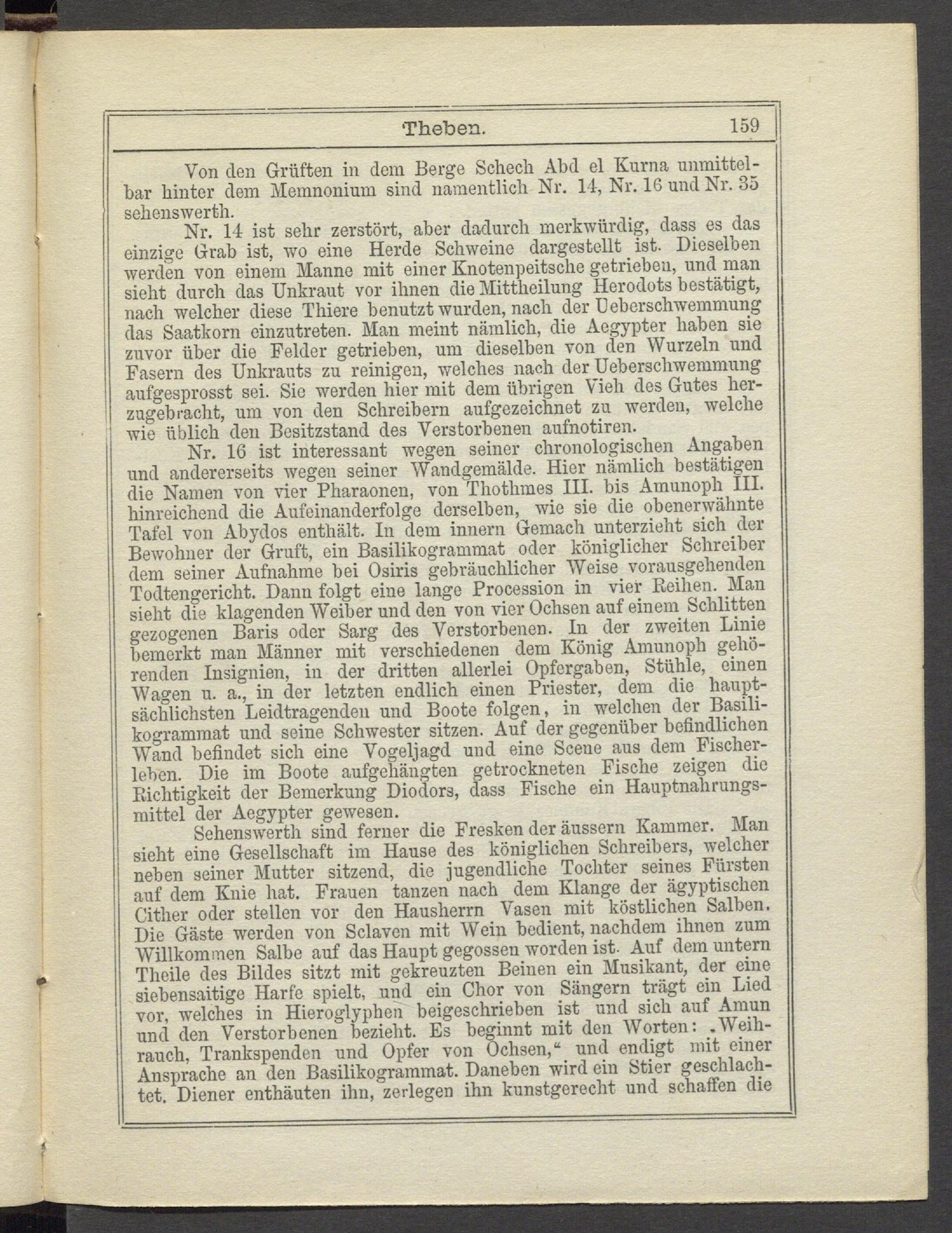 Von den Grüften in dem Berge Schech Abd el Kurna unmittelbar hinter dem Memnonium sind namentlich Nr. 14, Nr. IG und Nr. 35 sehenswerth.
