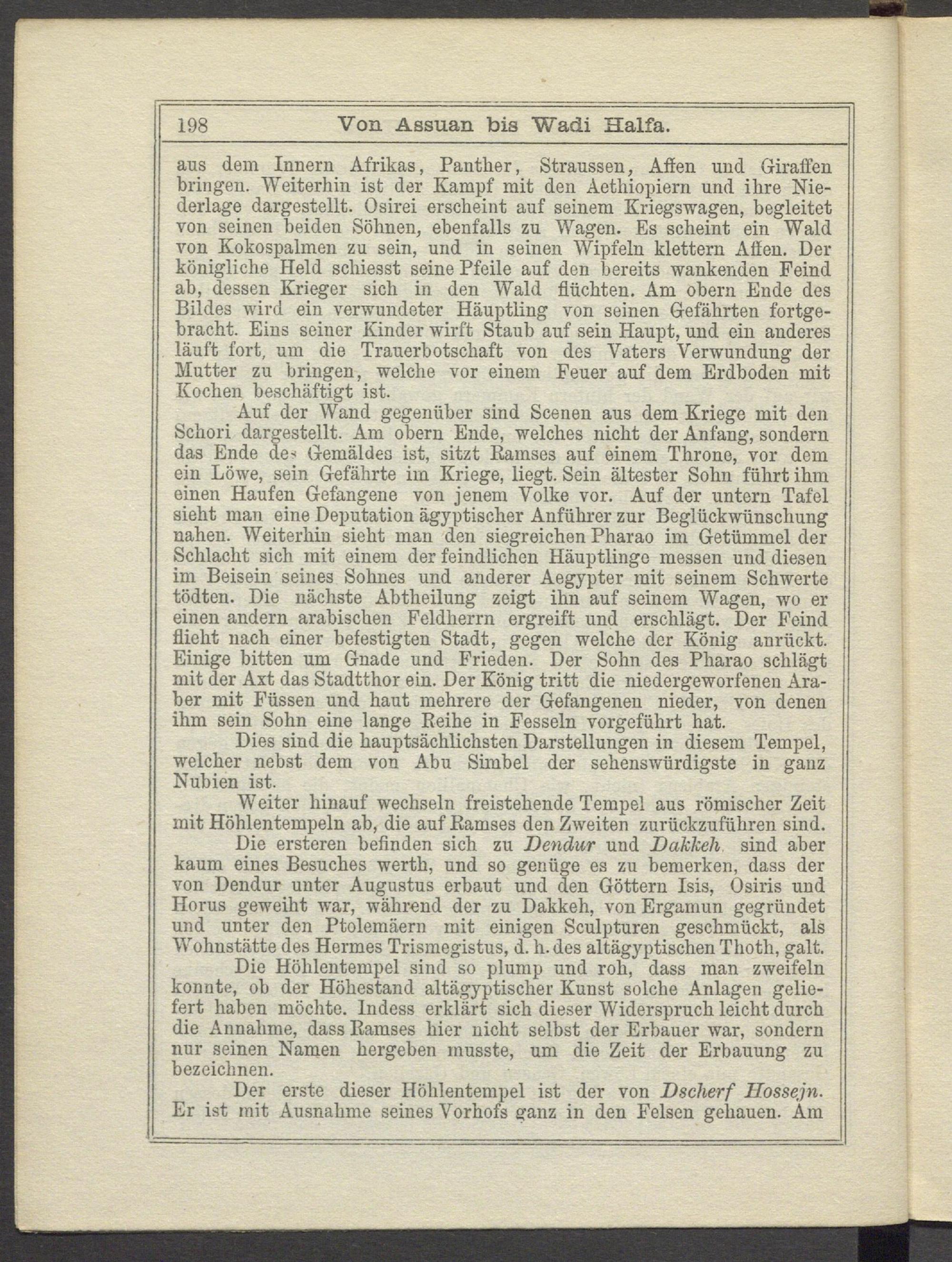 Dies sind die hauptsächlichsten Darstellungen in diesem Tempel, welcher nebst dem von Abu Simbel der sehenswürdigste in ganz Nubien ist.
