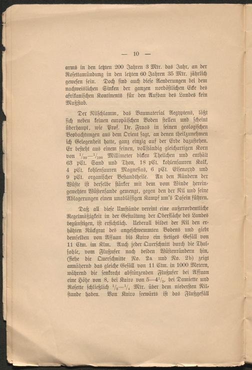 arms in den letzten 200 Jahren 3 Mir. das Jahr, an der Rosettamündung in den letzten 60 Jahren 35 Mtr. jährlich gewesen sein. Doch sind auch diese Aenderungen bei dem nachweislichen Sinken der ganzen nordöstlichen Ecke des afrikanischen Kontinents für den Aufbau des Landes kein Maßstab.