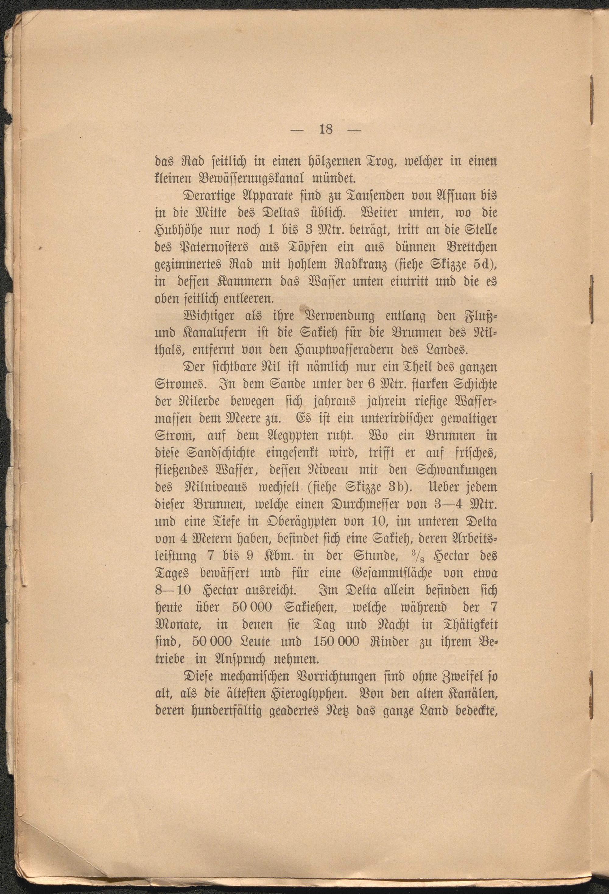 Diese mechanischen Vorrichtungen sind ohne Zweifel so alt, als die ältesten Hieroglyphen. Von den alten Kanälen, deren hundertfältig geädertes Netz das ganze Land bedeckte,