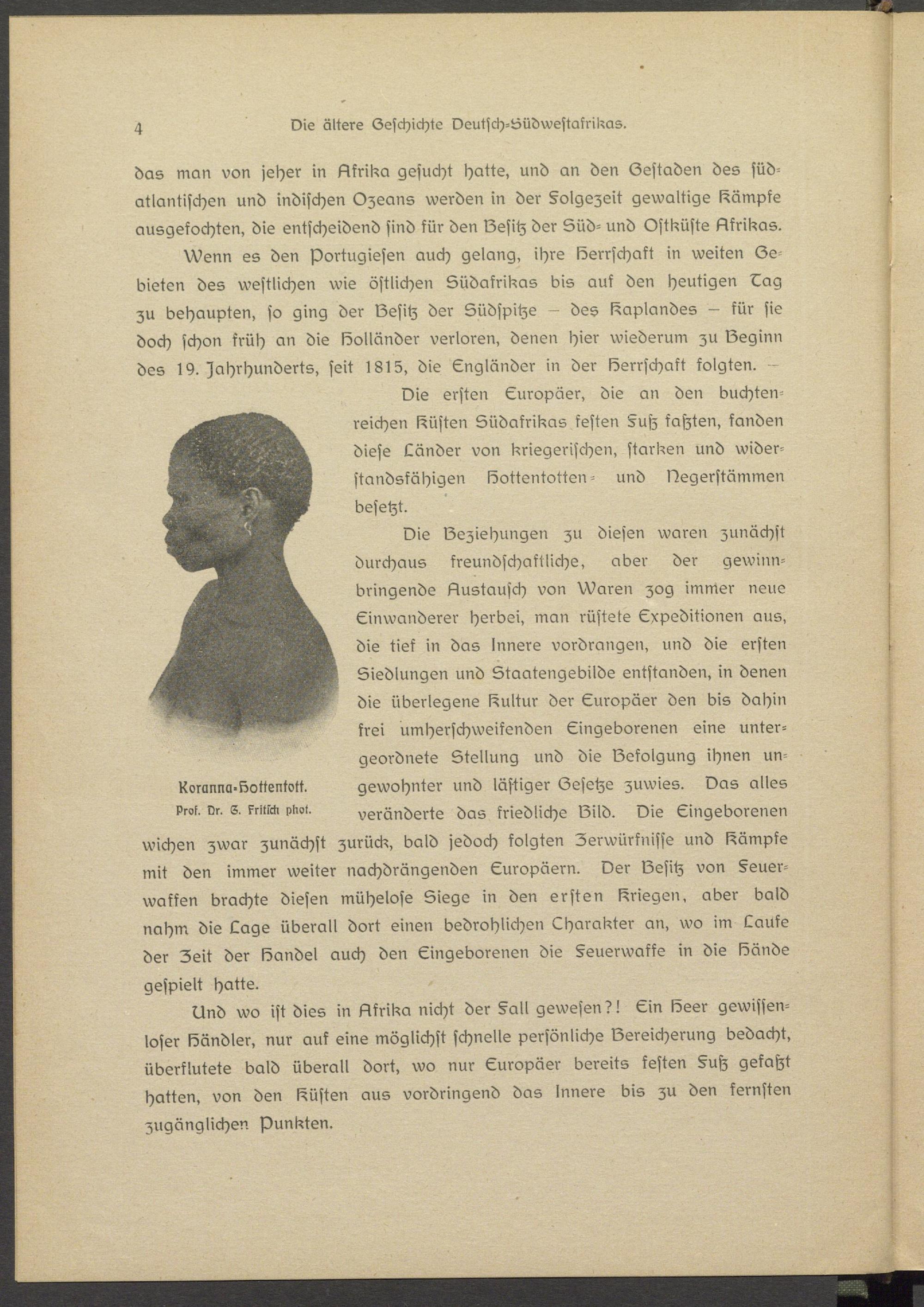 Vie ersten Europäer, die an den buchtenreichen Lüsten Südafrikas festen §utz katzten, fanden diese Länder von kriegerischen, starken und widerstandsfähigen Bottsntotten - und Bsgsrstämmen besetzt.