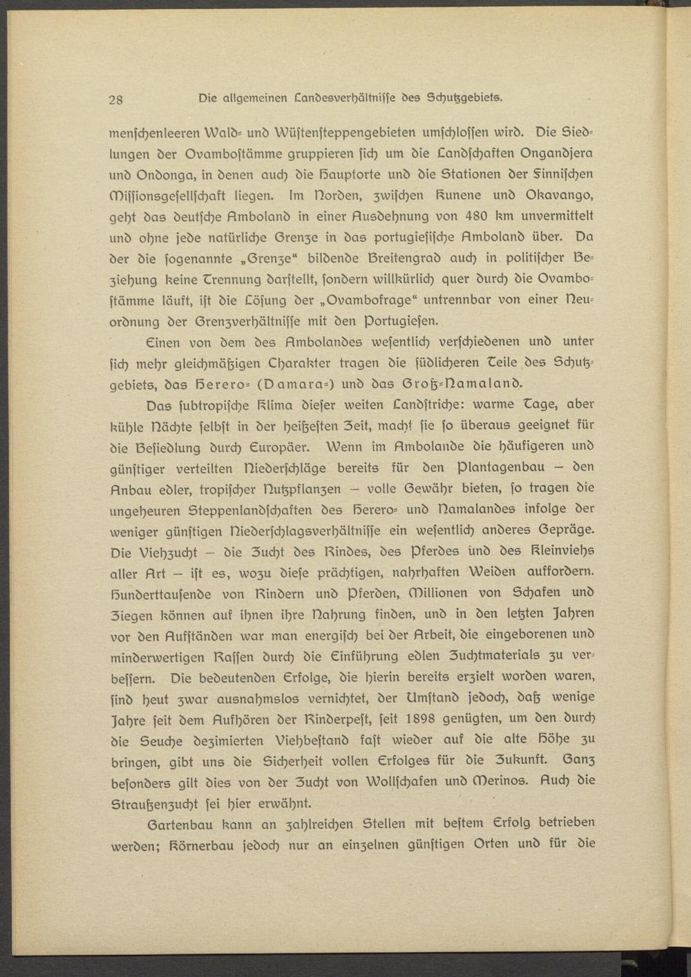 Einen von dem des Bmbolandes wesentlich verschiedenen und unter sich mehr gleichmäßigen Charakter tragen die südlicheren Eeils des Schutzgebiets, das lösrero- (Bamara-) und das Grotz-Bamaland.