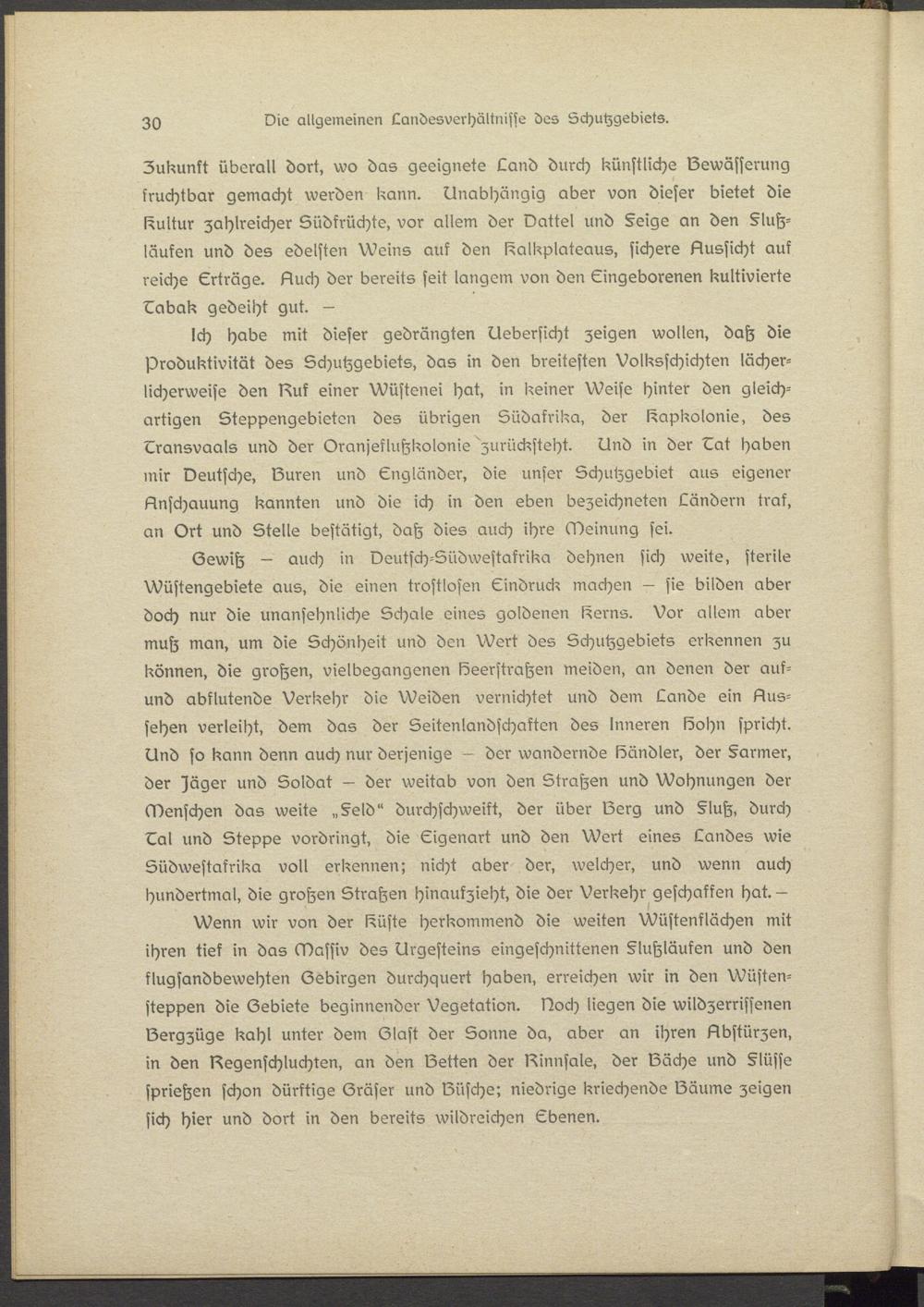 Ich habe mit dieser gedrängten Uebersicht zeigen wollen, datz dls Produktivität des Schutzgebiets, das in den breitesten Volksschichten lächer- licherwsiss den Buk einer Wüstenei hat, in keiner Weise hinter den gleichartigen Steppengebieten des übrigen Südafrika, der ßapkolonis, des Transvaals und der Oranjsflutzkolonie zurücksteht. Und in der Eat haben nur Deutsche, Buren und Engländer, die unser Schutzgebiet aus eigener flnschauung kannten und die ich in den eben bezeichneten Ländern traf, an Ort und Stelle bestätigt, datz dies auch ihre Meinung sei.
