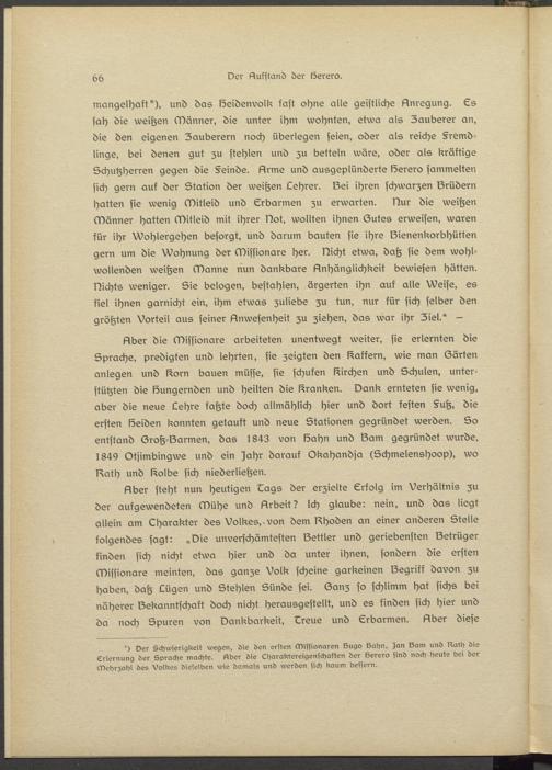 ') Der Schwierigkeit wegen, die den ersten Missionaren iöugo Sahn, lan IZam und Nach die Lrlernung der Sprache machte, aber die charaktereigenschatten der Serero sind noch heute bei der Mehrzahl des Volkes dieselben wie damals und werden sich kaum bessern.