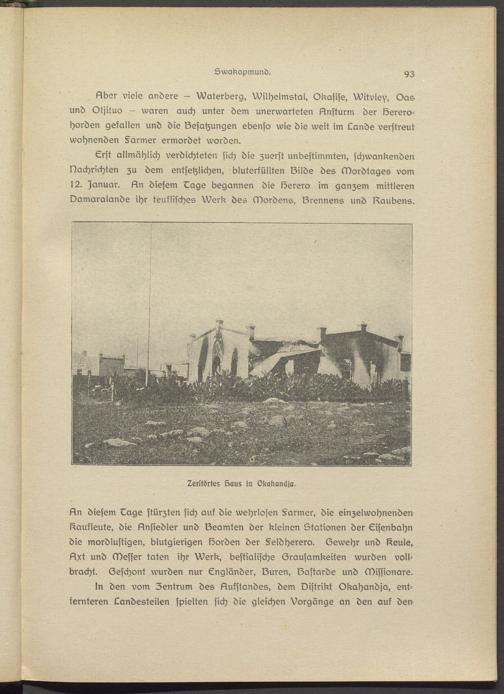 Llber viele andere - Watsrberg, Wilhslmstal, Okasise, Witvley, Gas und Otjituo — waren auch unter dem unerwarteten Ansturm der lösrero- hordsn gefallen und die lZesatzungen ebenso wie die weit im Lande verstreut wohnenden §armer ermordet worden.
