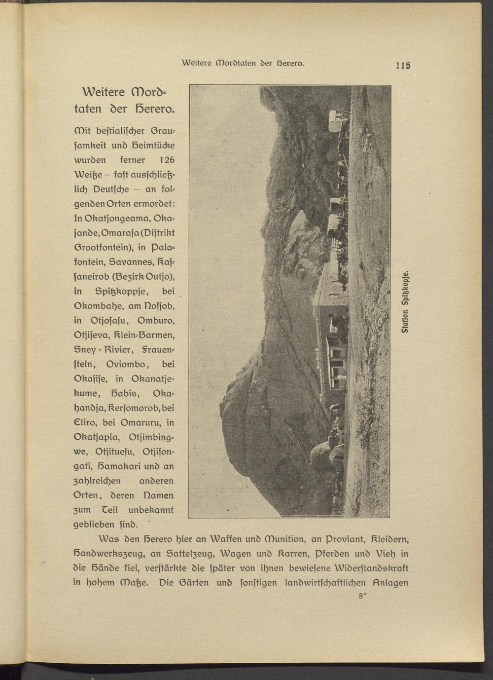 Was den Herero hier an Waffen und Munition, an Proviant, Kleidern, Handwerkszeug, an Lattslzeug, Wagen und Harren, Pferden und Vieh in die Hände kiel, verstärkte die später von ihnen bewiesene Widerstandskraft in hohem Matze. Die (Zärten und sonstigen landwirtschaftlichen Dnlagsn