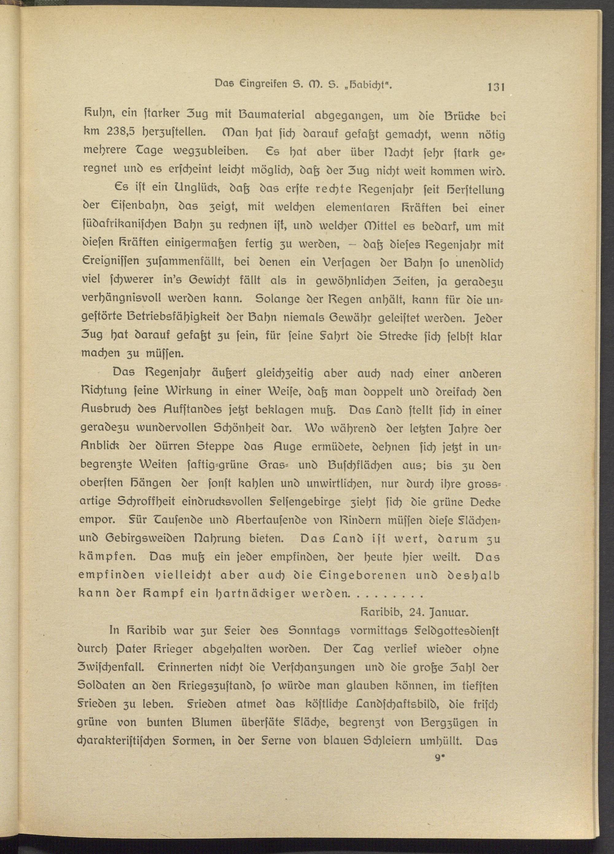 Cs ist ein Unglück, datz das erste rechte Degenjahr seit Verstellung der Eisenbahn, das zeigt, mit welchen elementaren Trakten bei einer südafrikanischen Sahn zu rechnen ist, und welcher Mittel es bedarf, um mit diesen Kräften einigermaßen fertig zu werden, - datz dieses Degenjahr mit Ereignissen zusammenfällt, bei denen ein Versagen der Sahn so unendlich viel schwerer in's Gewicht fällt als in gewöhnlichen Zeiten, ja geradezu verhängnisvoll werden kann. Solange der Degen anhält, kann kür die ungestörte lZetrisbskähigkeit der Sahn niemals Gewähr geleistet werden. )eder Zug hat darauf gekotzt zu sein, kür seine §ahrt die Strecke sich selbst klar machen zu müssen.