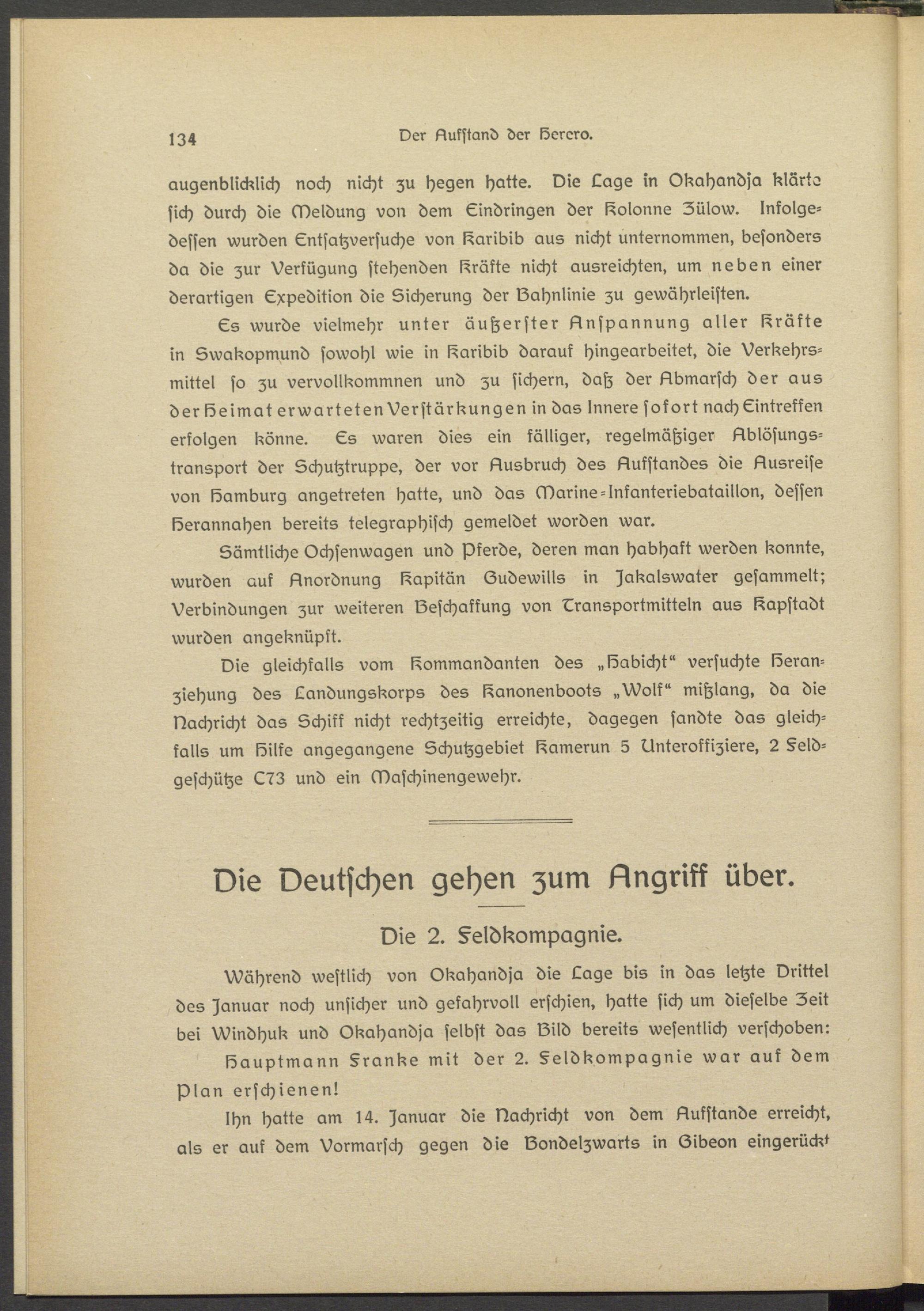 Während westlich von Okahandja die Lage bis in das letzte Drittel des Januar noch unsicher und gefahrvoll erschien, hatte sich um dieselbe Zeit bei Windhuk und Okahandja selbst das Bild bereits wesentlich verschoben:
