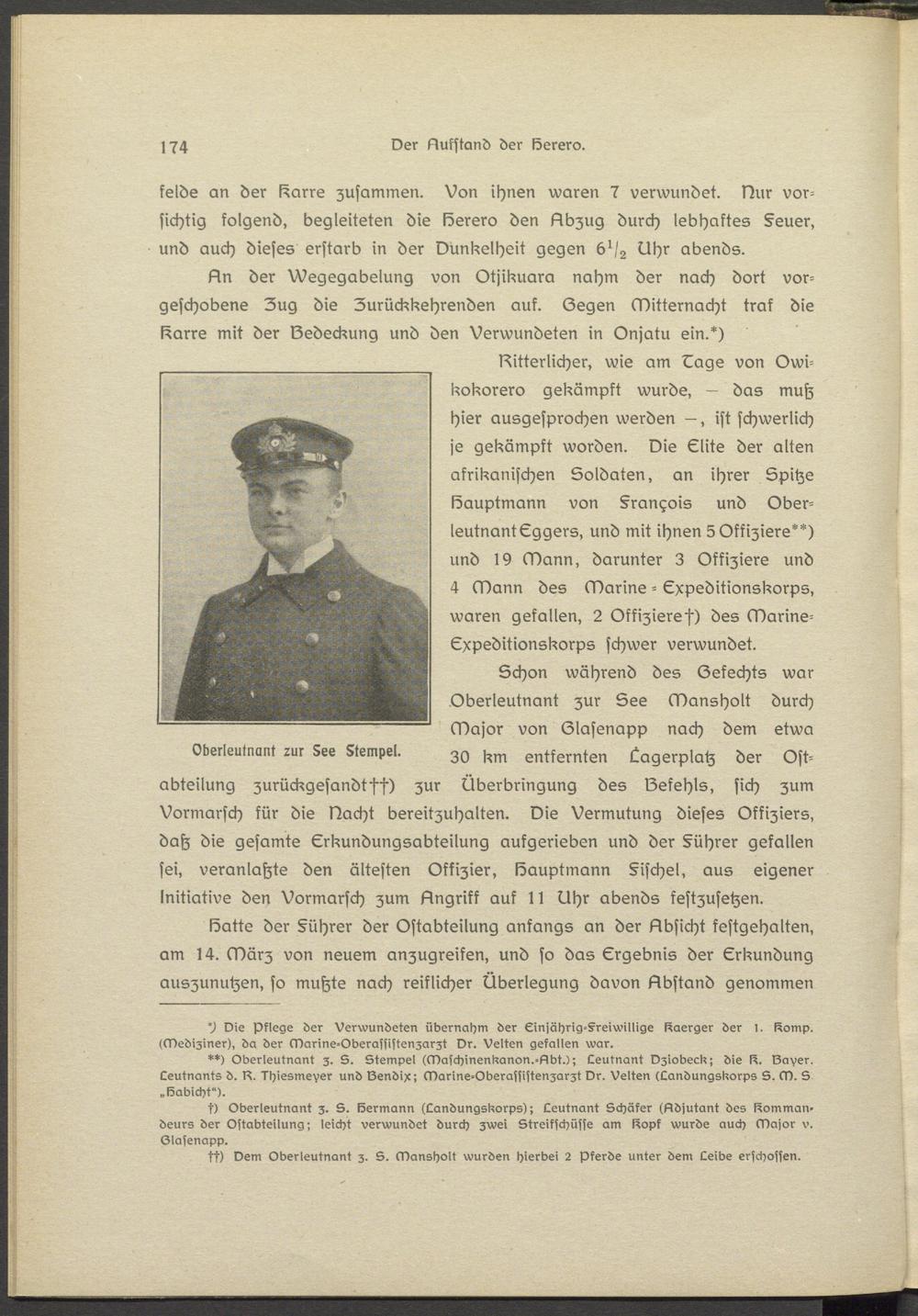 An der Wegegabelung von Otjikuara nahm der nach dort vorgeschobene Zug die Zurückkehrenden auf. Segen Mitternacht traf die l^arre mit der IZedeckung und den Verwundeten in Onjatu ein.*)