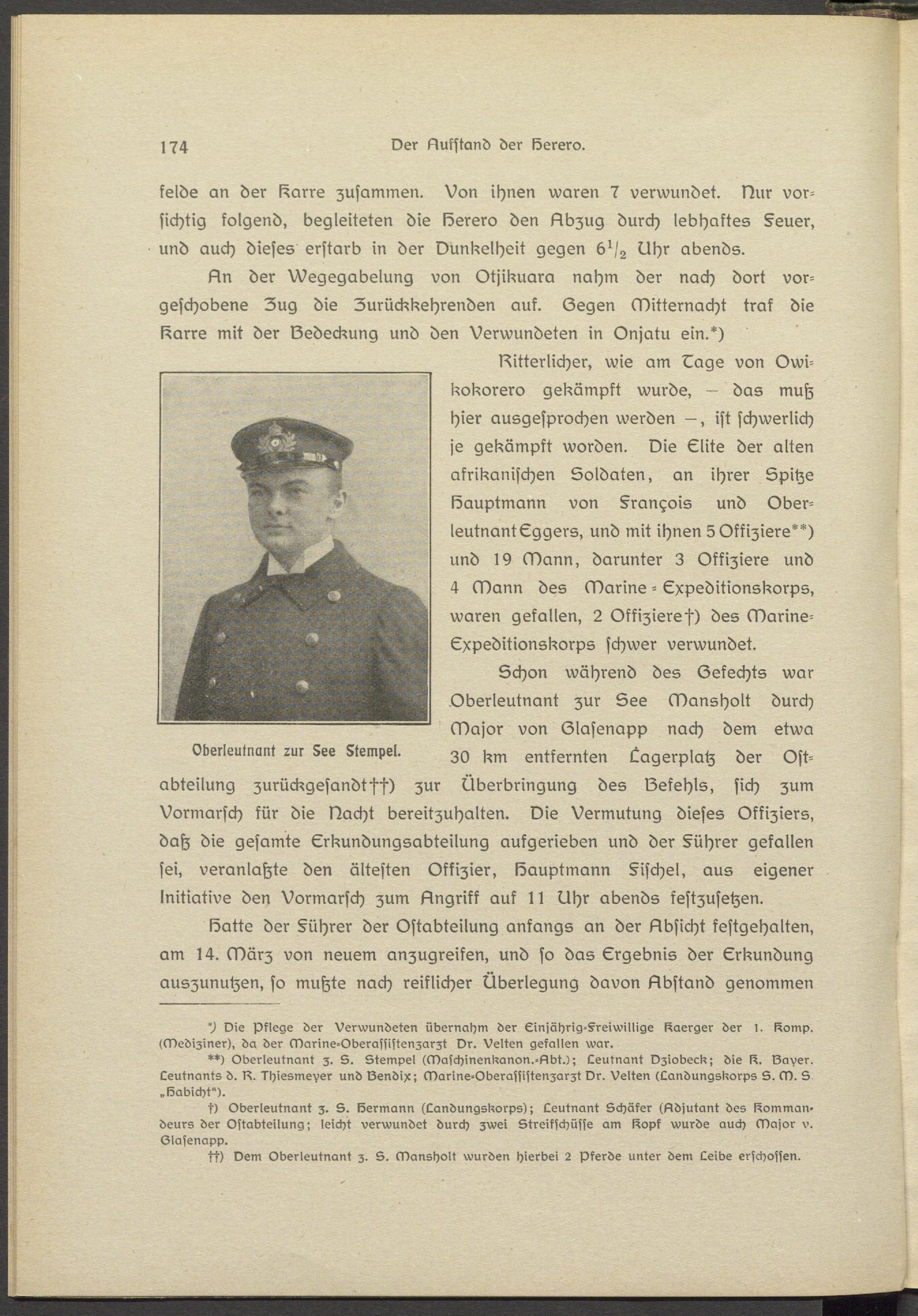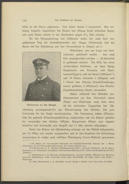 s) Oberleutnant z. S. Hermann (Landungskorps); Leutnant Schäfer (Adjutant des Kommandeurs der Ostadteilung; leicht verwundet durch zwei Streifschüsse am Kopf wurde auch Major v. Olasenapp.