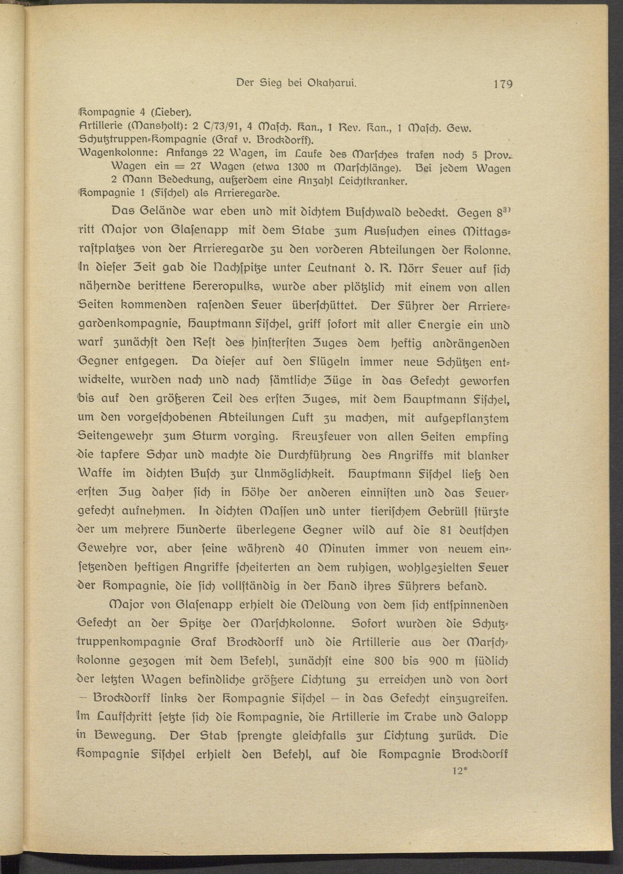 Artillerie (Mansholt): 2 L/73/9I, 4 Masch. kan., 1 ksv. kan., I Masch. Sevv. Lchutztruppen-Compagnie (Sraf v. Vrockdorfh.