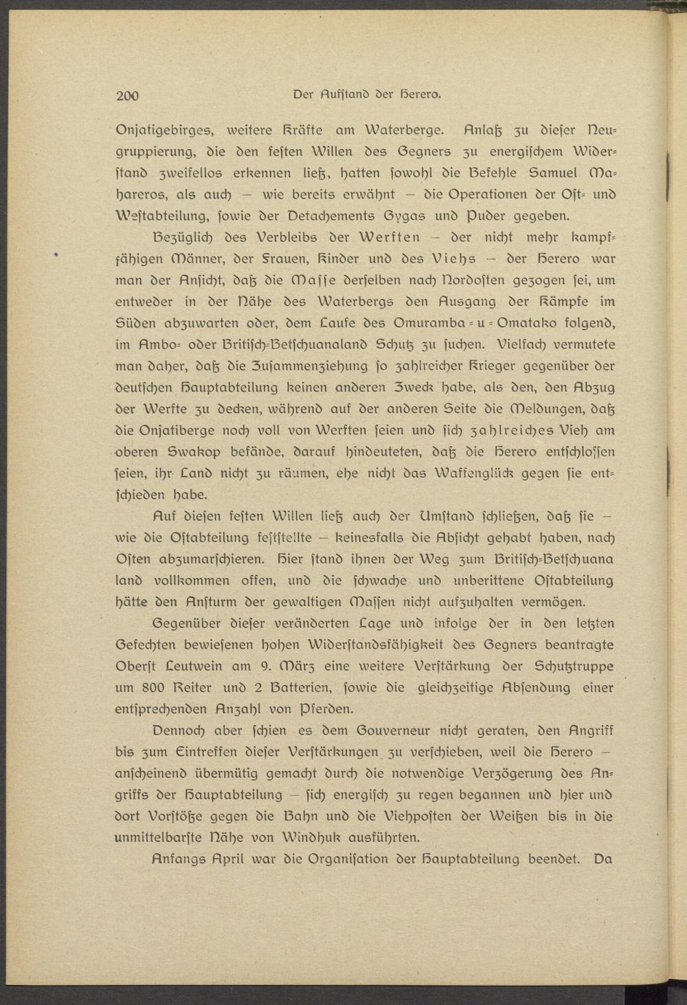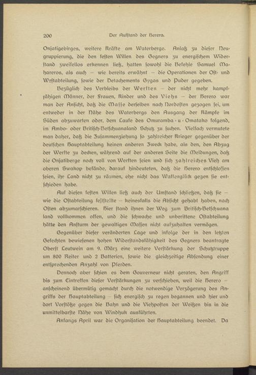 Onjatigsbirgss, weitere Kräfte am Waterbergs. Anlah zu dieser Aeu- gruppierung, die den testen Willen des Gegners zu energischem Widerstand zweifellos erkennen lieh, hatten sowohl die lZstshls Samuel Ma- hareros, als auch - wie bereits erwähnt - die Operationen der Ost- und Wsstabteilung, sowie der Ostachsments G^gas und Puder gegeben.