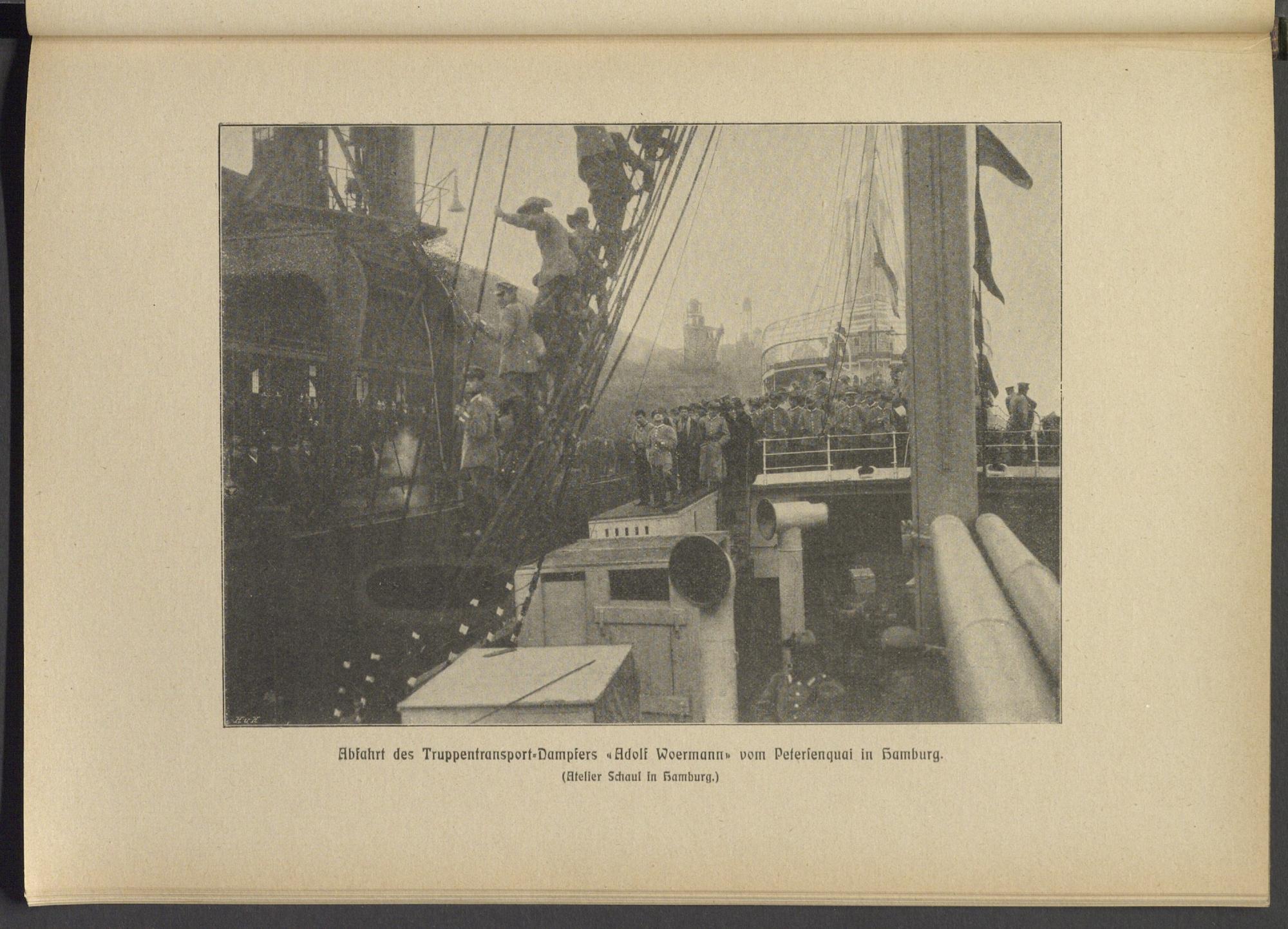 Abkakrt <Ies Iruppentransport-Vampiers «tI6olk i^oermann» vom peierlenquai in kamburg.