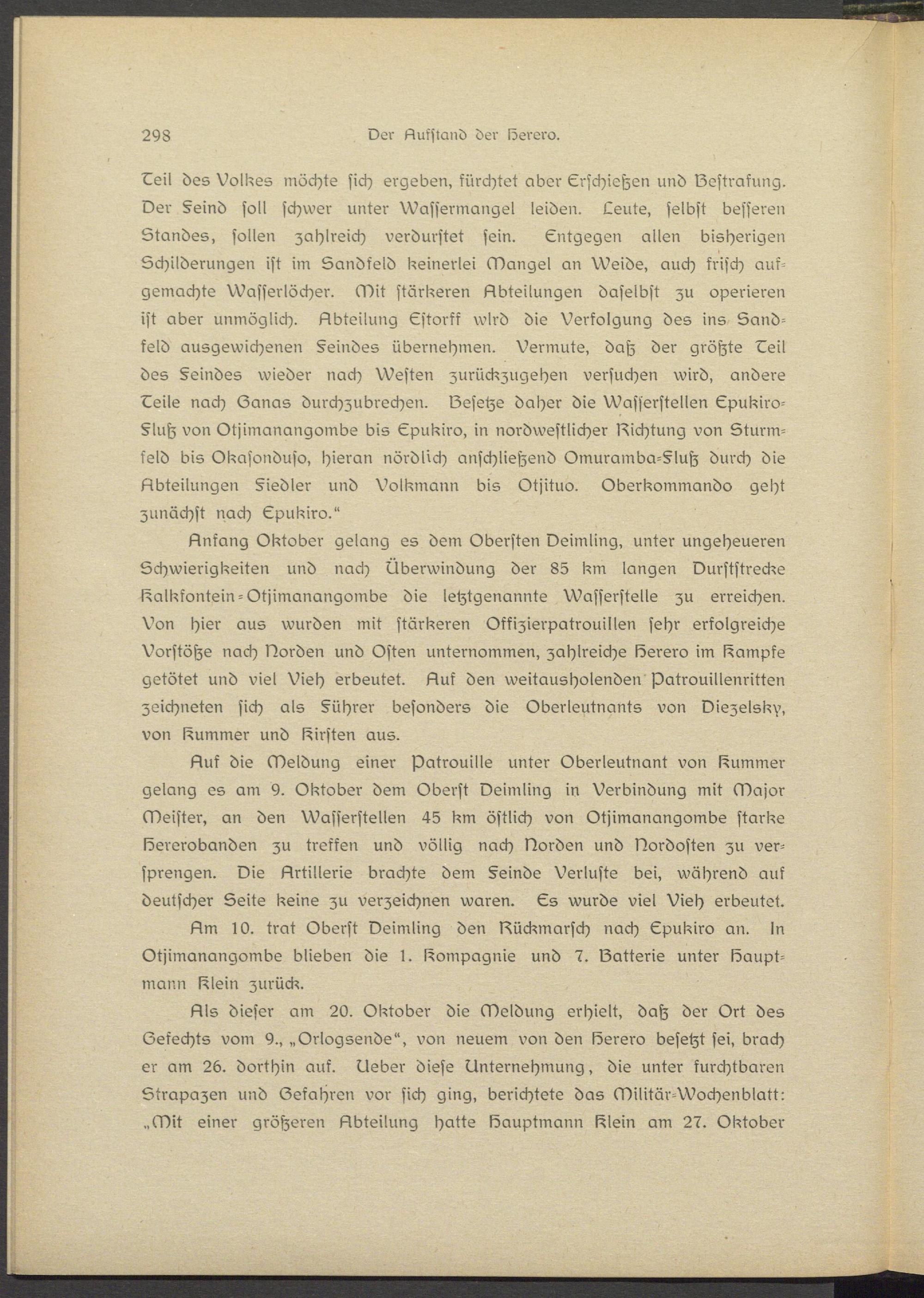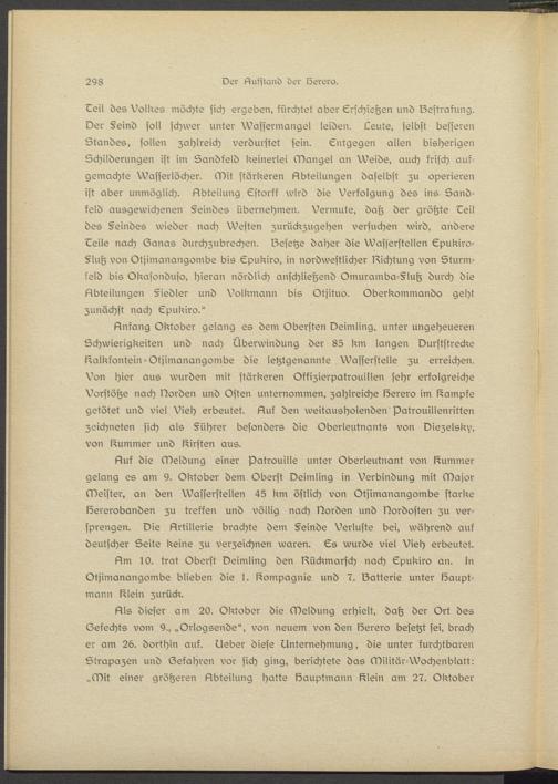 Am 10. trat Oberst Deimling den Bückmarsch nach Epukiro an. In Otjimanangombs blieben die 1. Compagnie und 7. Batterie unter köaupt- mann l^Isin zurück.