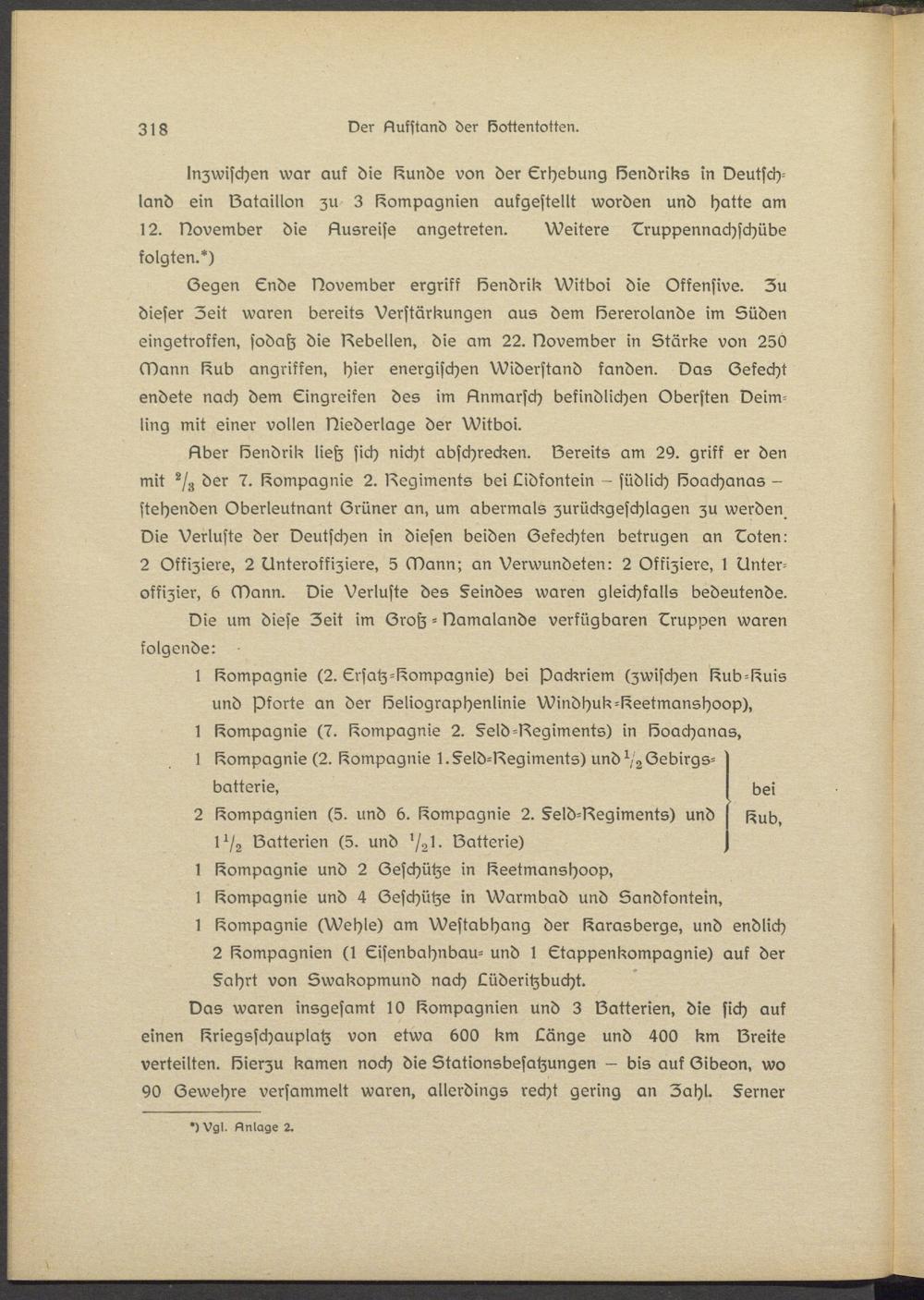 l Compagnie (2. Ersatz-Compagnie) bei packriem (zwischen ßub-ßuis und Pforte an der löeliographsnlinie Windhuk-I^setmanshoop), l Compagnie (7. Compagnie 2. §sld-Begiments) in löoachanas,