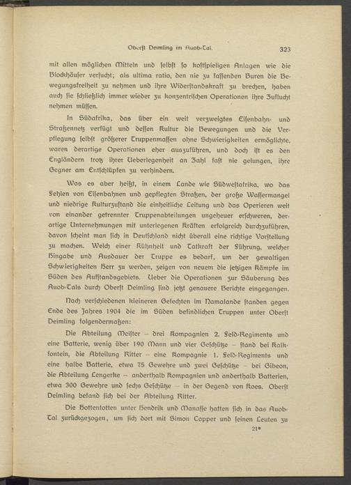 Dach verschiedenen kleineren Oefechten im Damalande standen gegen Ende des Wahres 1904 die im Süden befindlichen Eruppsn unter Oberst Dsimling folgendermaßen: