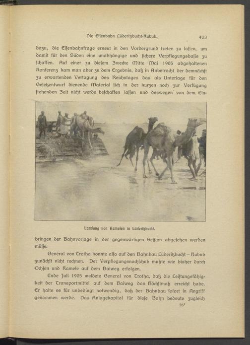 General von Erotha konnte also auk den Sahnbau Lüdsritzbucht — l^ubub zunächst nicht rechnen. Der Verpflegungsnachschub mutzte wie bisher durch Ochsen und Kamele aut dem lZaiwsg erfolgen.