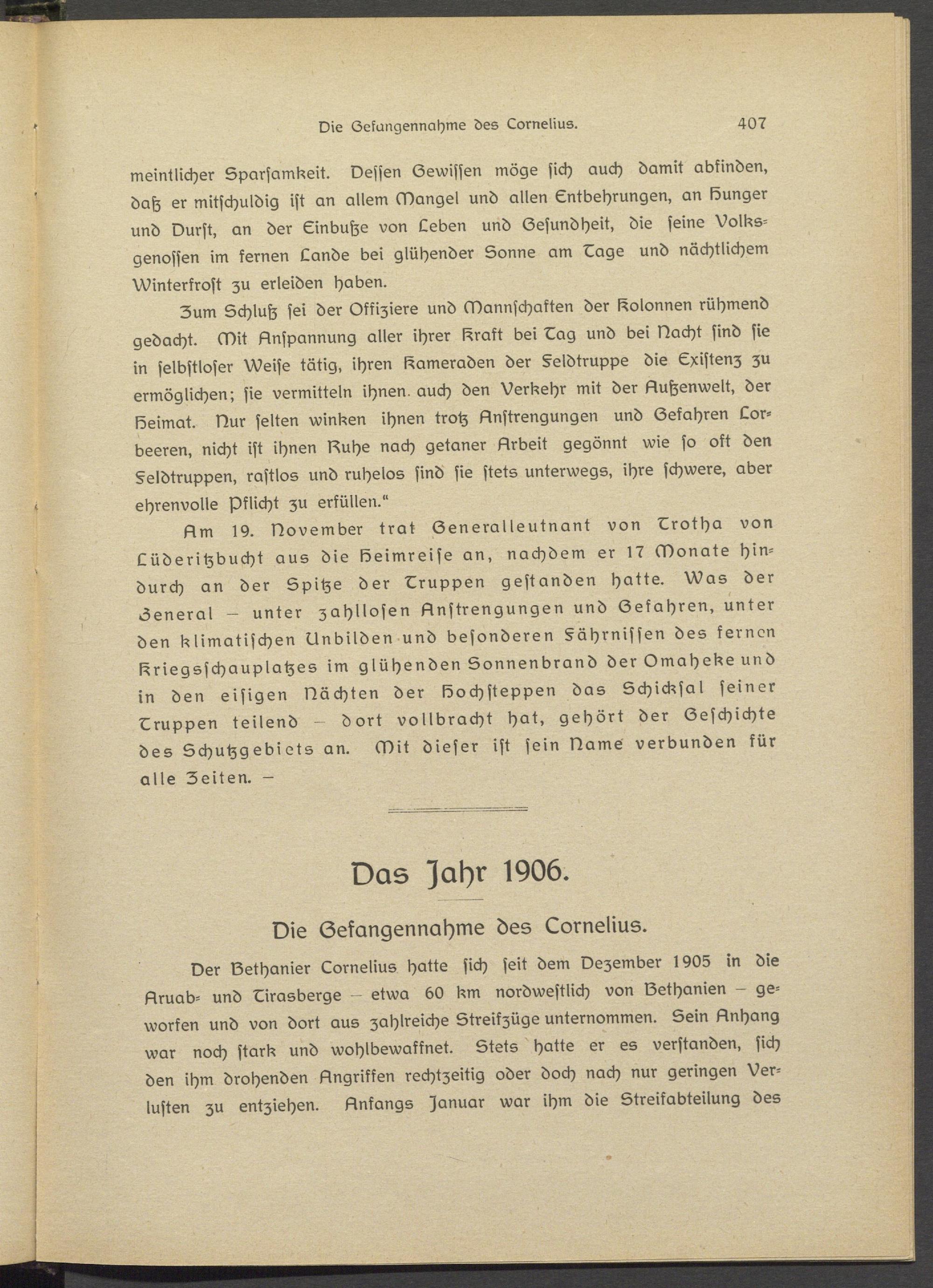 Der Gethanier Lornelius hatte sich seit dem Dezember 1Y05 in die Aruab- und Eirasbsrge etwa 60 km nordwestlich von lZethanien - geworfen und von dort aus zahlreiche Streifzüge unternommen. Sein Anhang war noch stark und wohlbswakfnet. Stets hatte er es verstanden, sich den ihm drohenden Angriffen rechtzeitig oder doch nach nur geringen Verlusten zu entziehen. Anfangs )anuar war ihm die Streifabteilung des