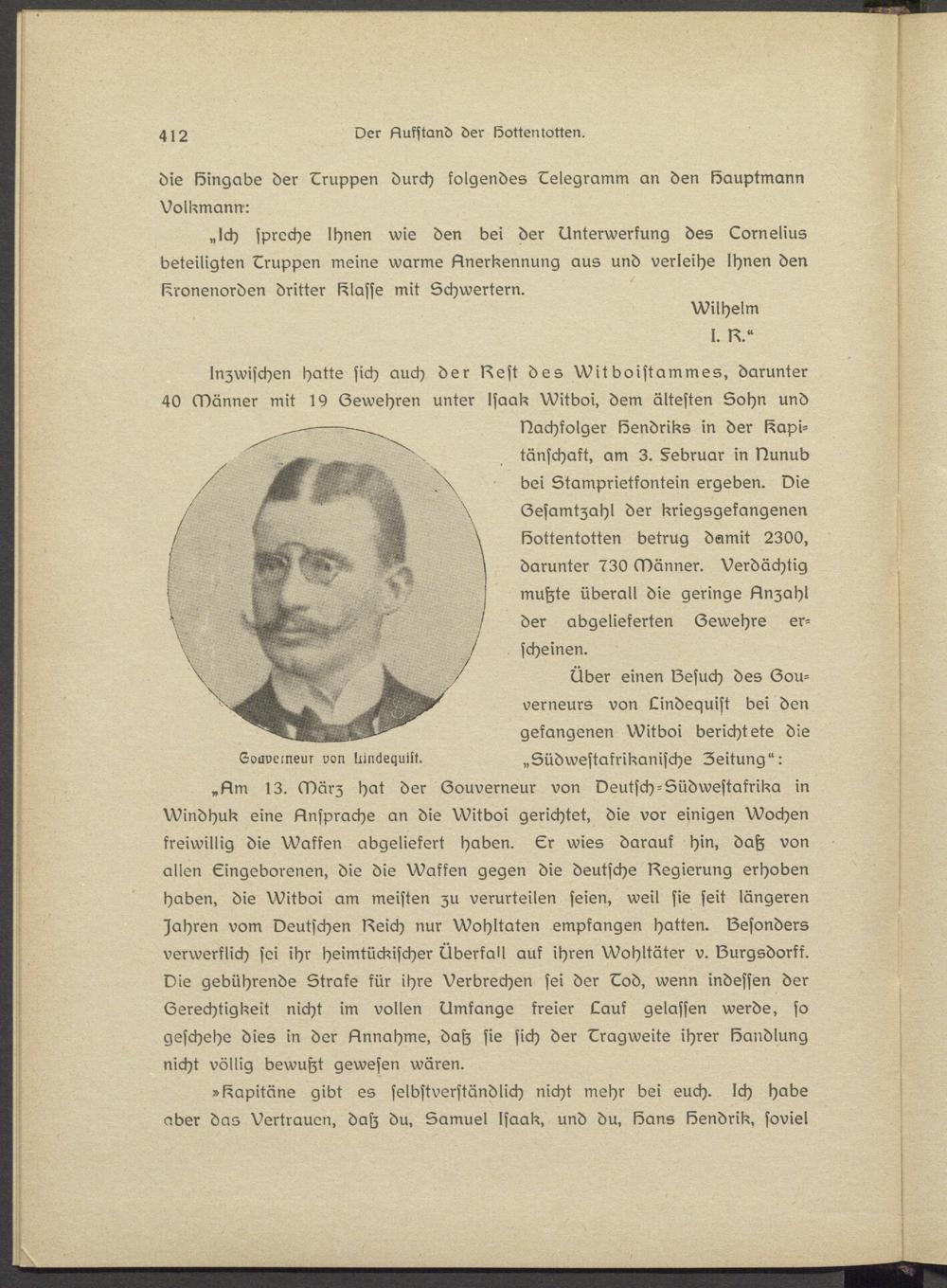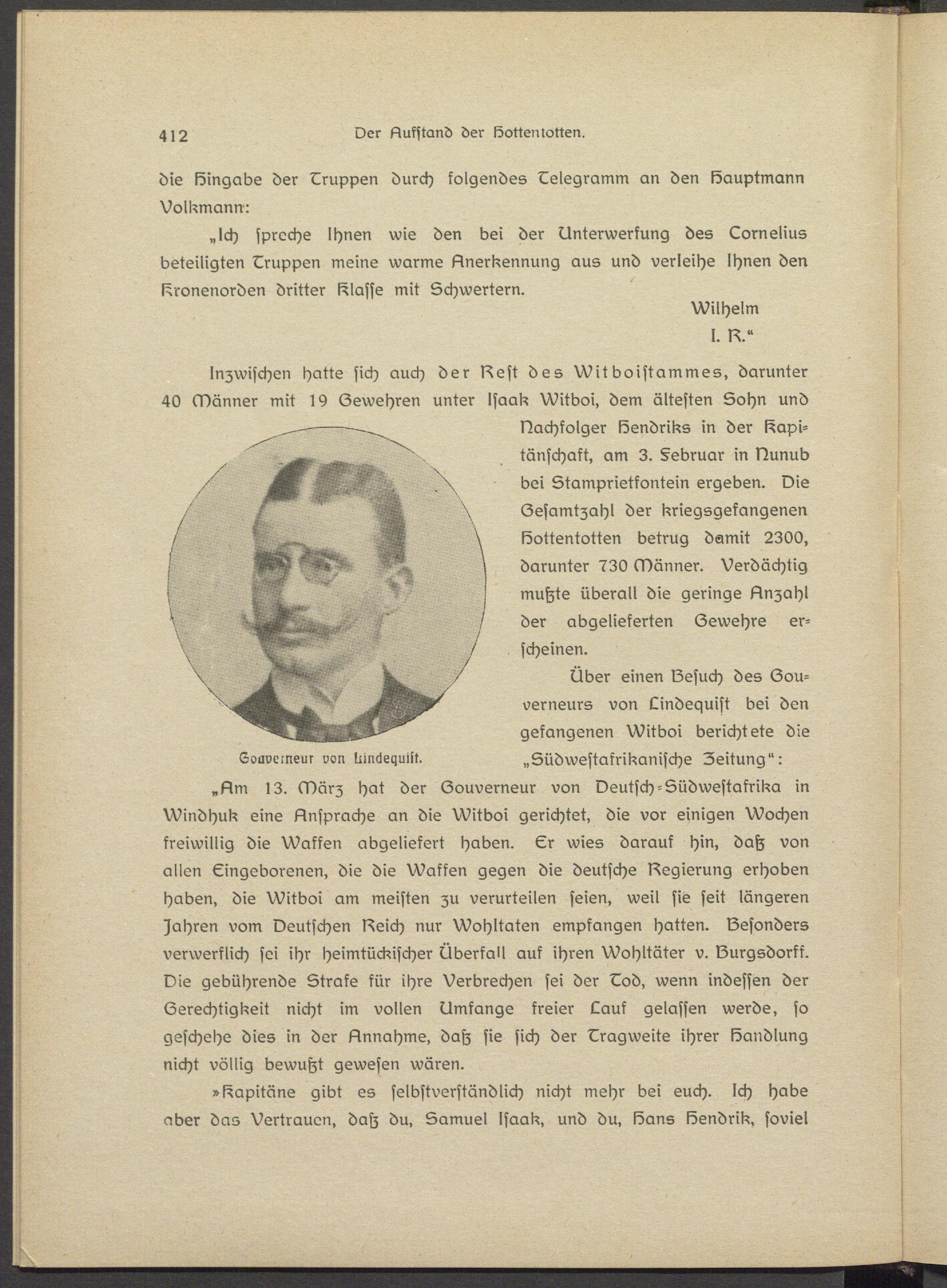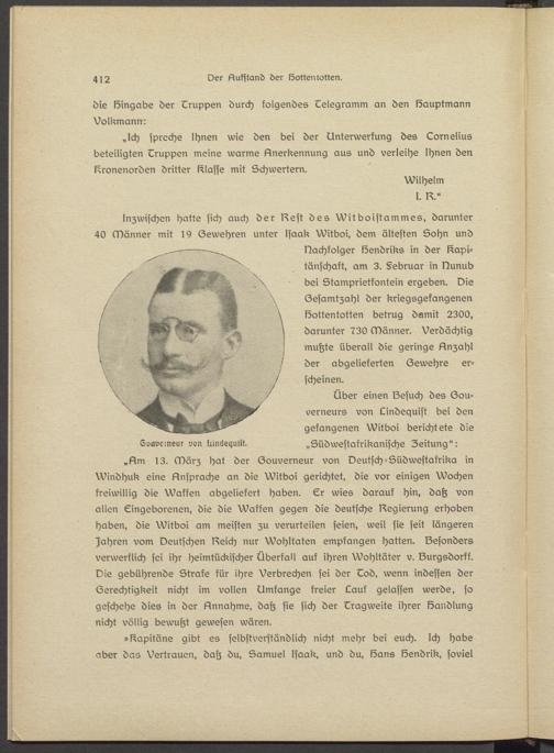 Über einen Gesuch des Gouverneurs von Lindequist bei den gefangenen Witboi berichtete die „Südwsstakrikanische Zeitung":
