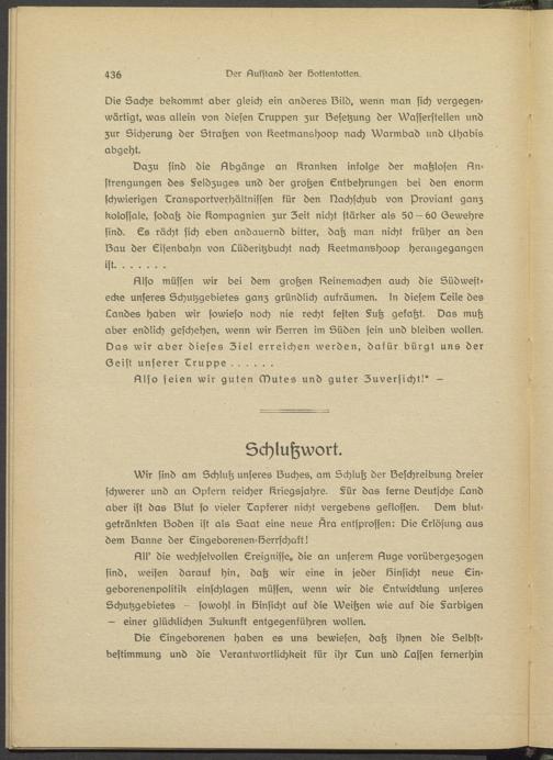 Wir sind am Schluß unseres Buches, am Schluß der Beschreibung dreier schwerer und an Opksrn reicher l^riegsjahrs. §ür das ferne Deutsche Land aber ist das Blut so visier Eapfersr nicht vergebens geflossen. Dem blutgetränkten Soden ist als Saat eine neue Ära entsprossen: Die Erlösung aus dem Sänne der Eingeborenen-Serrschakt!