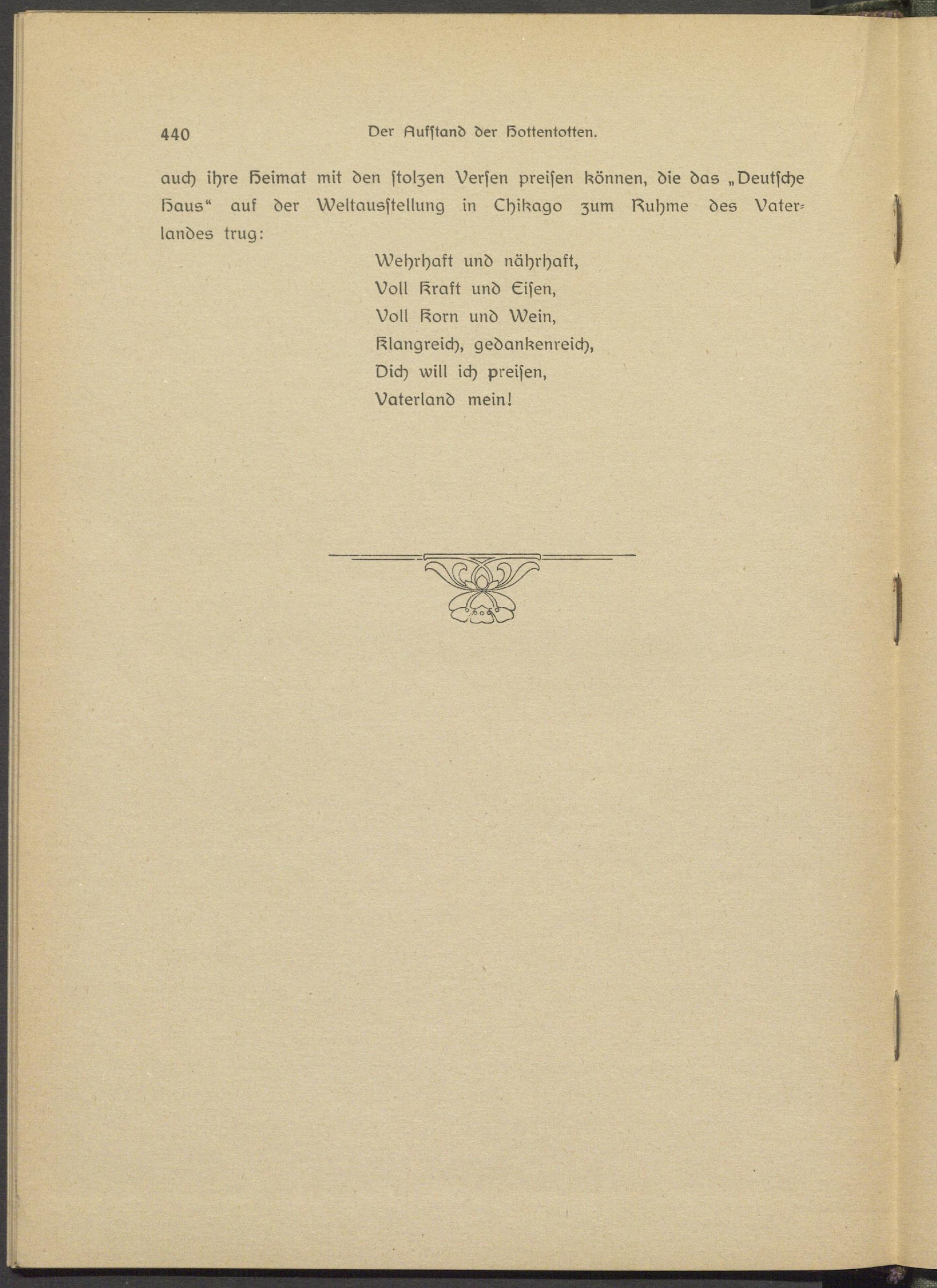 auch ihre Heimat mit den stolzen Versen preisen können, die das „Deutsche Haus" auk der Weltausstellung in Lhikago zum I^uhms des Vaterlandes trug: