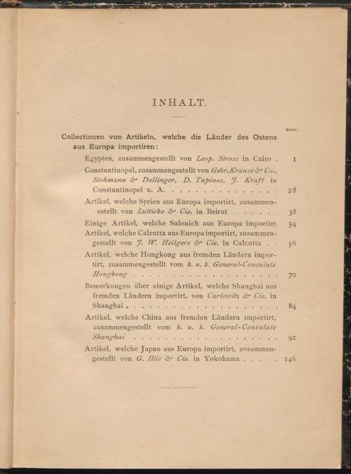 Artikel, welche China aus fremden Ländern importirt, zusammengestellt vom k. u. k. General-Consutäte