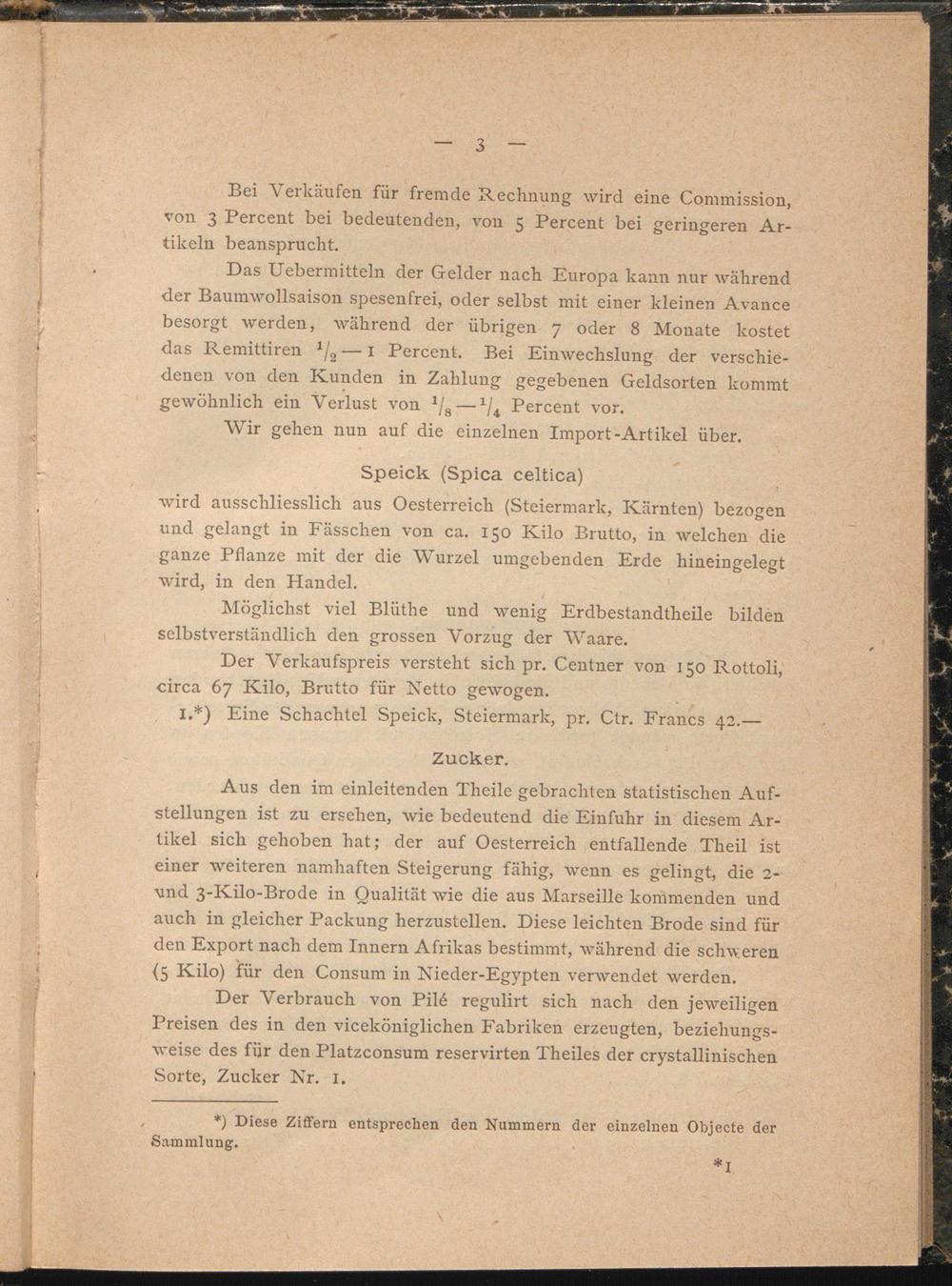 Bei Verkäufen für fremde Rechnung wird eine Commission, von 3 Percent bei bedeutenden, von 5 Percent bei geringeren Artikeln beansprucht.