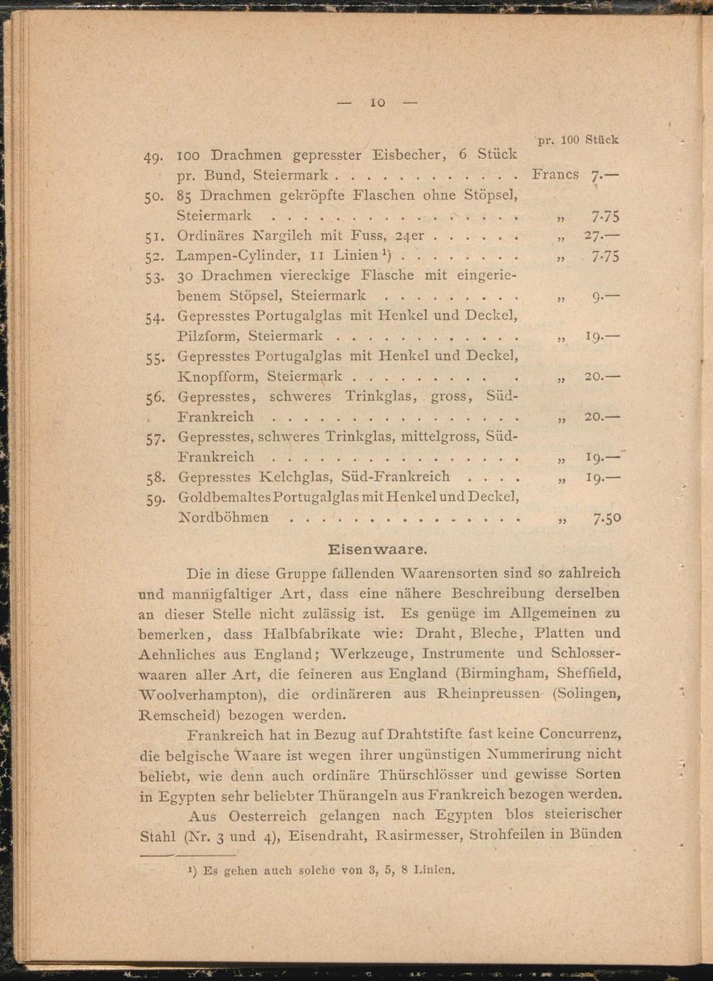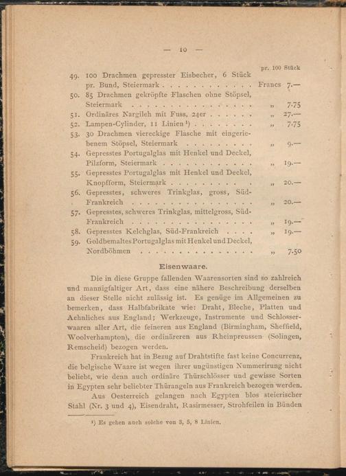 Aus Oesterreich gelangen nach Egypten blos steierischer Stahl (Kr. 3 und 4), Eisendraht, Rasirmesser, Strohfeilen in Bünden