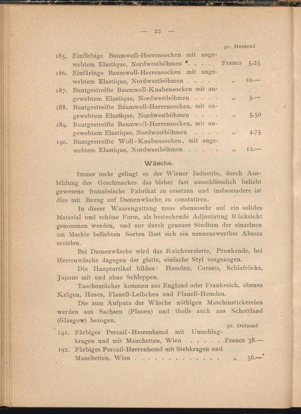 Immer mehr gelingt es der Wiener Industrie, durch Ausbildung des Geschmackes das bisher fast ausschliesslich beliebt gewesene französische Fabrikat zu ersetzen und insbesondere ist dies mit Bezug auf Damenwäsche, zu constatiren.