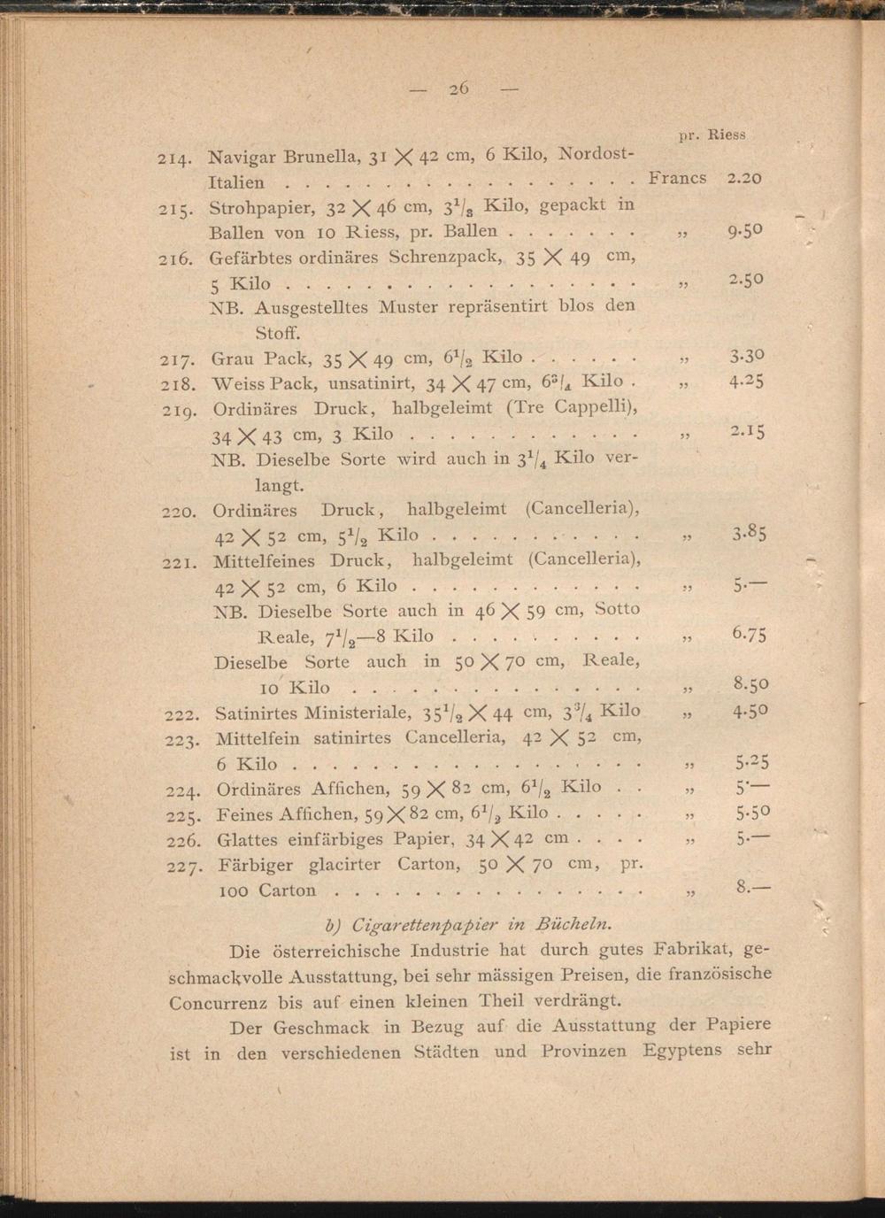225. Feines Affichen, 59X82 cm, ö'/j Kilo. „ 5.50