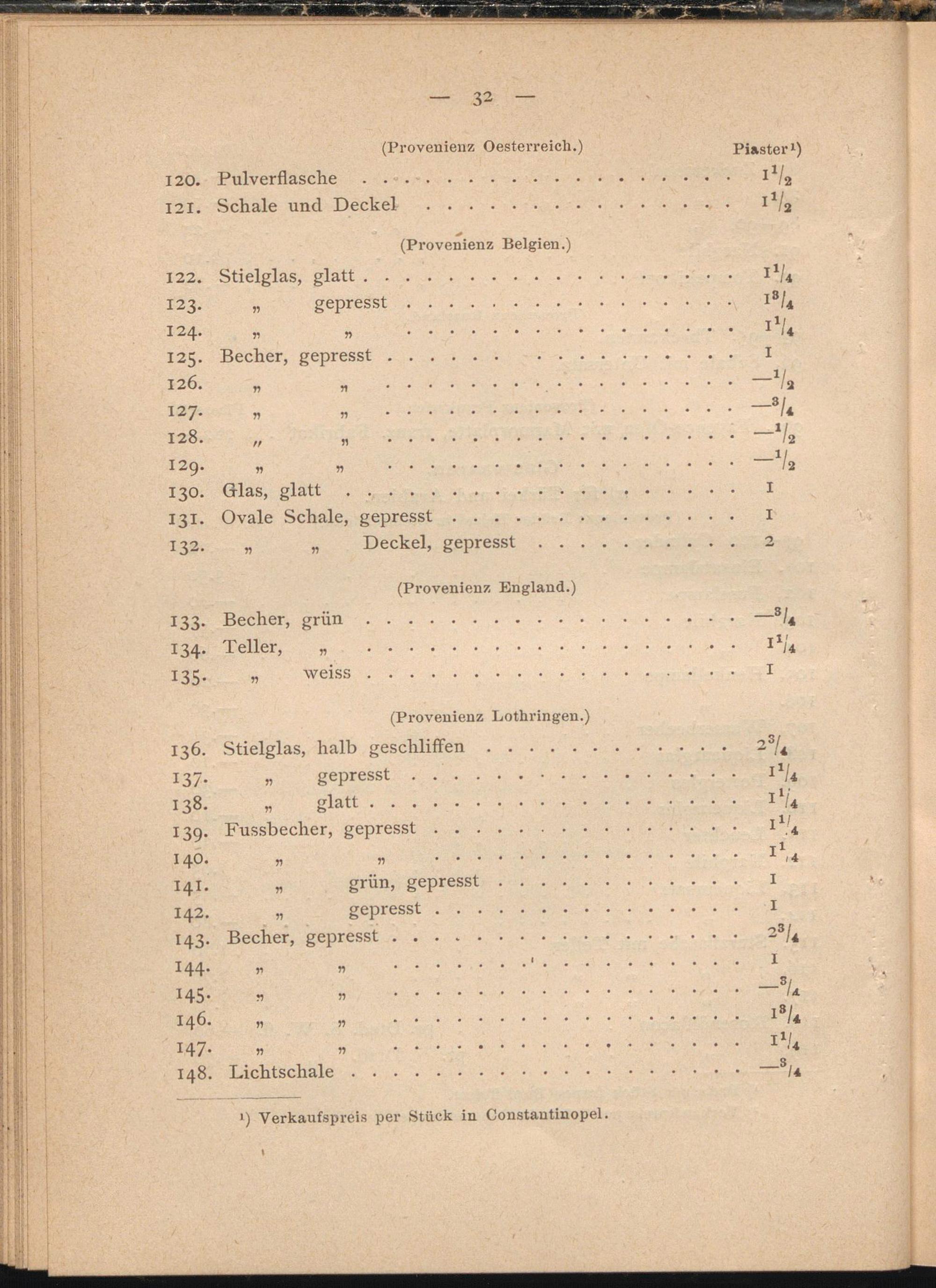 l ) Verkaufspreis per Stück in Constantinopel.