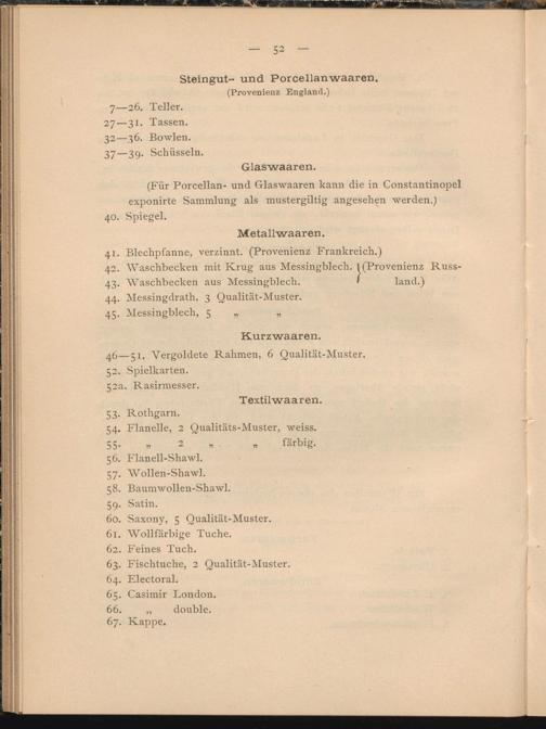 (Für Porcellan- und Glaswaaren kann die in Constantinopel exponirte Sammlung als mustergiltig angesehen werden.)