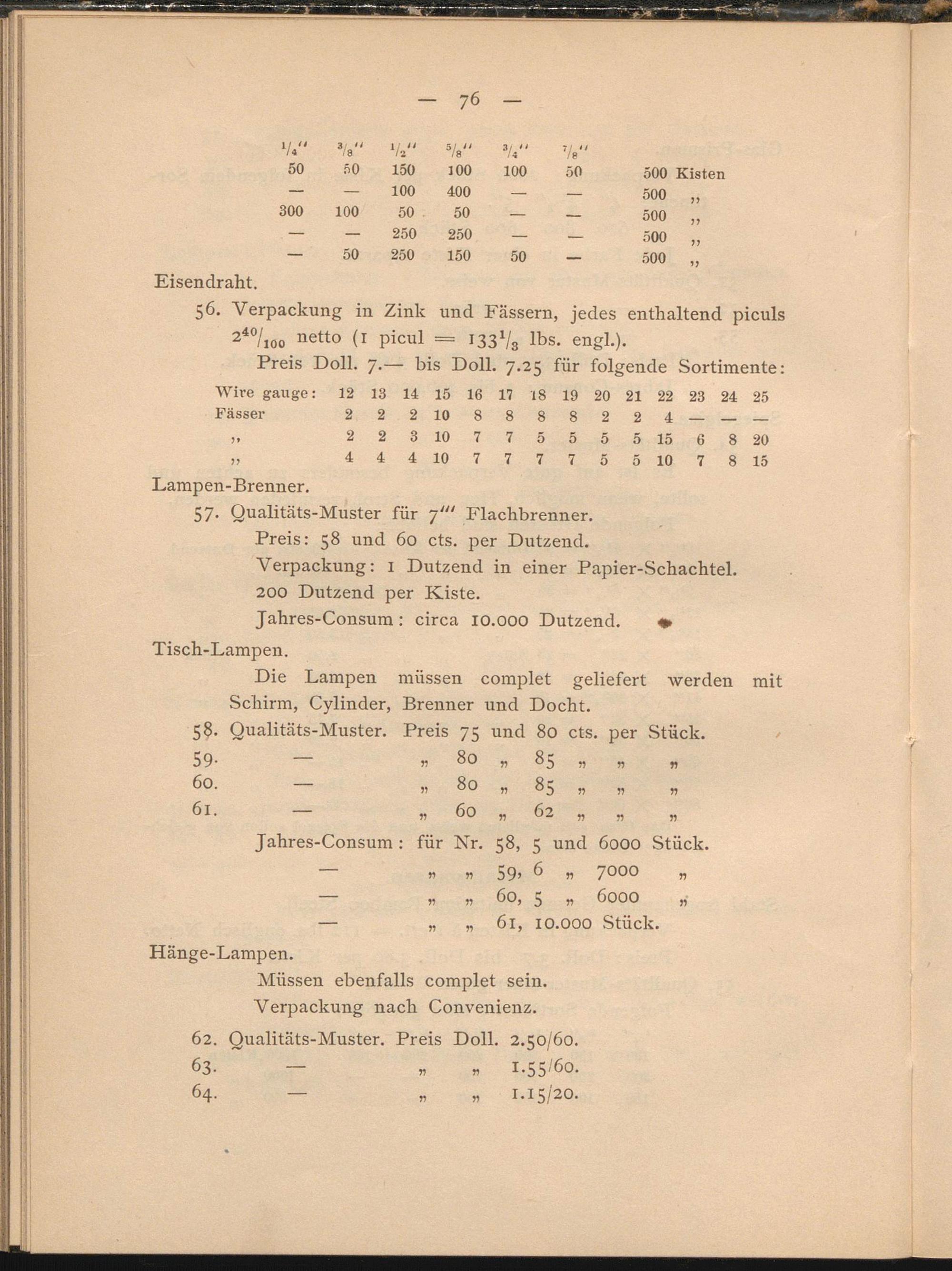 Die Lampen müssen complet geliefert werden mit Schirm, Cylinder, Brenner und Docht.