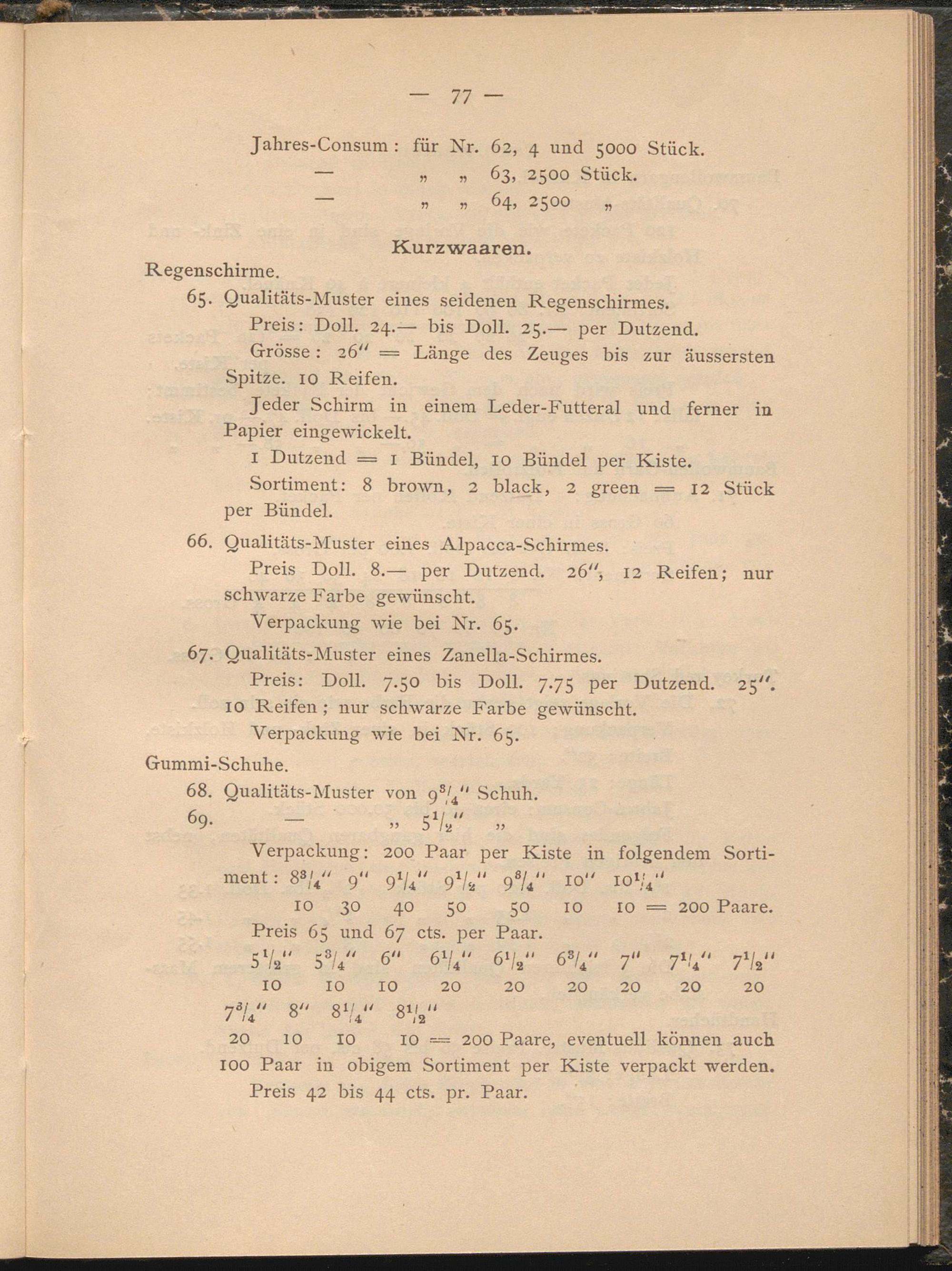 Preis: Doll. 7.50 bis Doll. 7.75 per Dutzend. 25“. IO Reifen ; nur schwarze Farbe gewünscht.