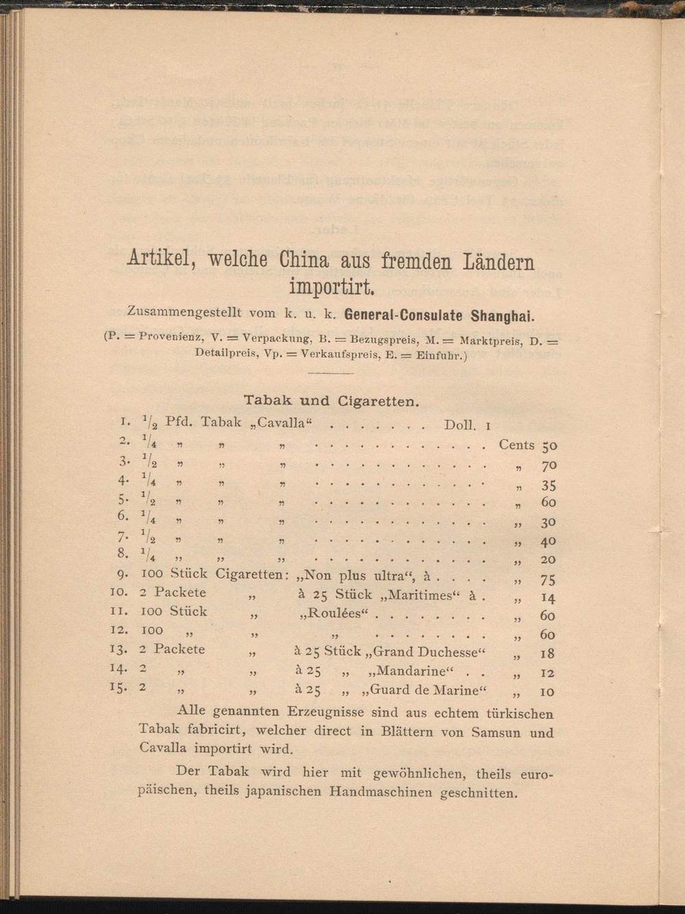 Zusammengestellt vom k. u. k. General-Consulate Shanghai.