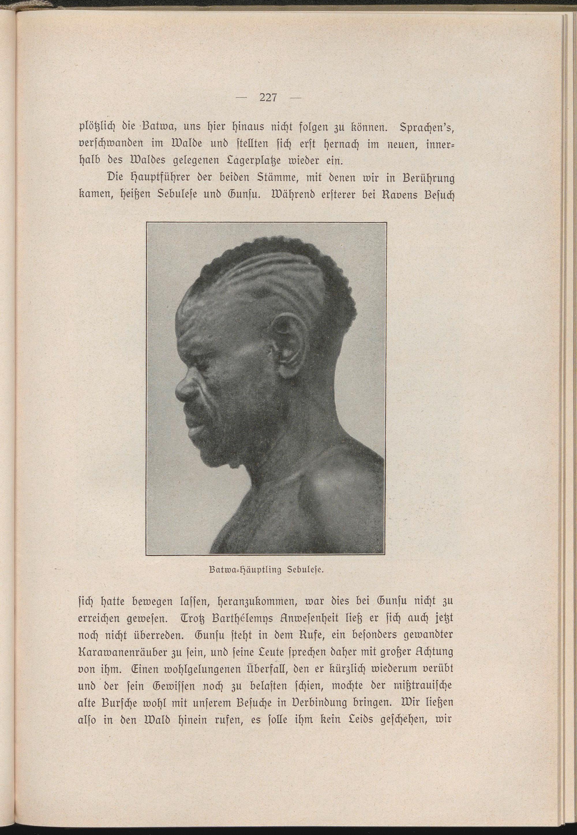 Die kfauptführer der beiden Ltämme, mit denen wir in Berührung kamen, heißen Sebulese und Gunsu. Während ersterer bei Bavens Besuch