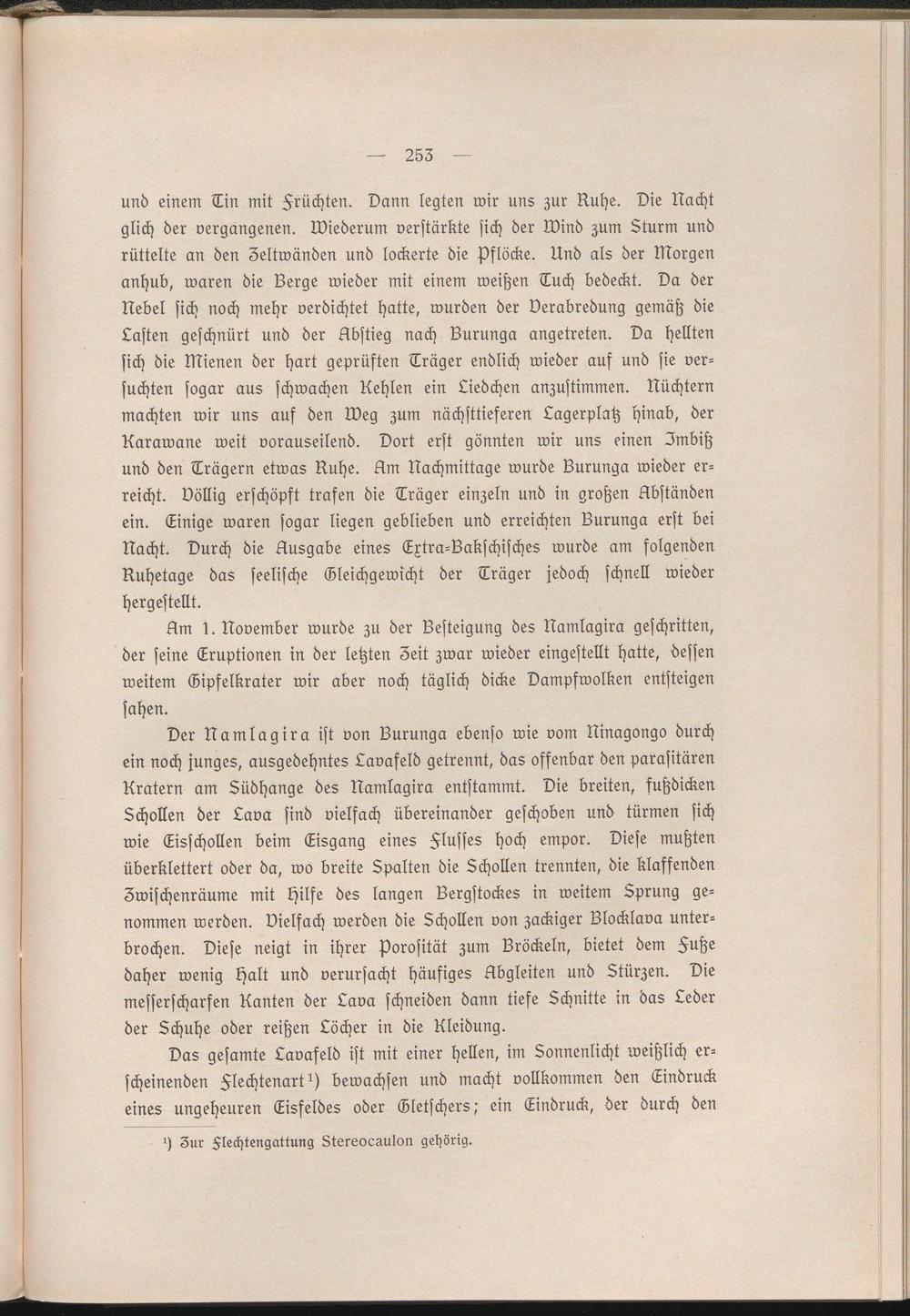 Um l. November wurde zu der Besteigung des Namlagira geschritten, der seine Eruptionen in der letzten Zeit zwar wieder eingestellt hatte, dessen weitem Gipfelkrater wir aber noch täglich dicke Vampswolken entsteigen sahen.
