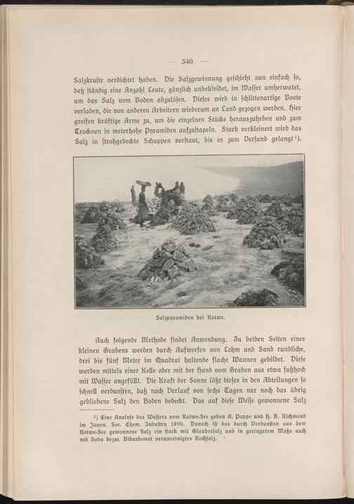 V Eine Knalyse des Wassers vom Katwe-See geben A. Pappe und ls. B. Kichmond im Iourn. Soc. Lhem. Sndustry l890. Danach ist das durch verdunsten aus dem Katwe-See gewonnene Salz ein stark mit Glaubersalz und in geringerem Klaße auch mit Soda bezw. Bikarbonat verunreinigtes Kochsalz.