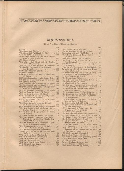 *Aus der Geschichte der 7. Kompagnie 1. Feldregiments (Brentano-Bernarda) .... 307 *Aus Hauptmann Frankes Zug (P. Rossa). . 100 Aus meinem Tagebuche (O. Jäger) .... 322 *Aus schweren Tagen (von Hammerstein) . . 97