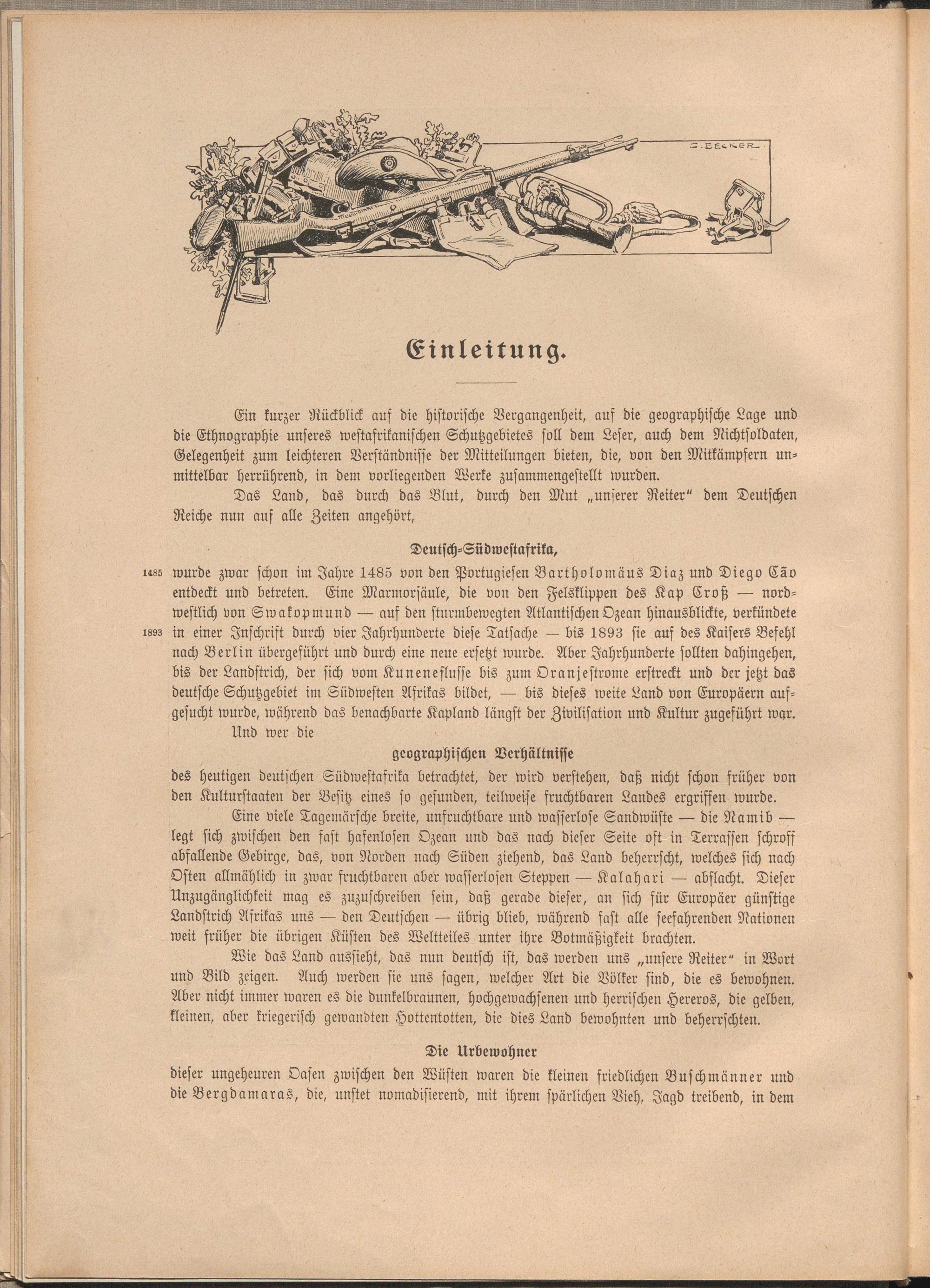 Ein kurzer Rückblick auf die historische Vergangenheit, auf die geographische Lage und die Ethnographie unseres Westafrikanischen Schutzgebietes soll dem Leser, auch dem Nichtsoldaten, Gelegenheit zum leichteren Verständnisse der Mitteilungen bieten, die, von den Mitkämpfern unmittelbar herrührend, in dem vorliegenden Werke zusammengestellt wurden.