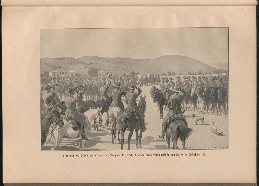 Ansprache des Oberst Leutwci» an die Truppen bei Okahandja vor deren AuSmarsch in den Orlo„ im Frühjahr 1904.