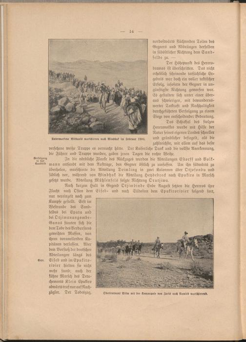 Der Höhepunkt des Herero- dramas ist überschritten. Das nicht erheblich scheinende tatsächliche Ergebnis war doch ein voller taktischer Erfolg, insofern der Gegner in ungünstigste Richtung geworfen war. Es gestaltete sich unter einer überaus schwierigen, mit bewunderns- werter Tatkraft und Nachhaltigkeit durchgeführten Verfolgung zu einem Siege von entscheidender Bedeutung.