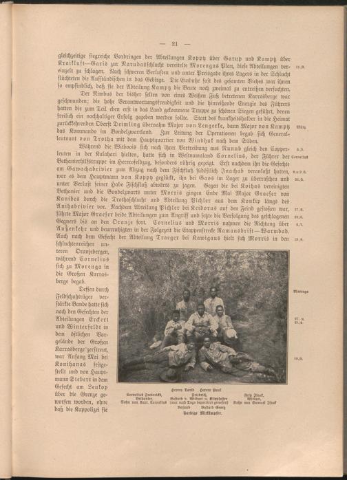 Der Nimbus der bisher selten von eines Weißen Fuß betretenen Karrasberge war geschwunden; die hohe Verantwortungsfreudigkeit und die hinreißende Energie des Führers hatten die zum Teil eben erst in das Land gekommene Truppe zu schönen Siegen geführt, denen freilich ein nachhaltiger Erfolg gegeben werden sollte. Statt des krankheitshalber in die Heimat zurückkehrenden Oberst Deimling übernahm Major von Lengerke, dann Major von Kamptz März das Kommando im Bondelzwartland. Zur Leitung der Operationen begab sich Generalleutnant von Trotha mit dem Hauptquartier von Wiudhuk nach dem Süden.