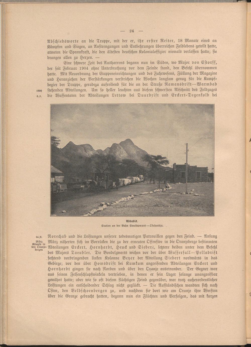 i4./s. Norechab und die Leistungen unserer todesmutigen Patrouillen gegen den Feind. — Anfang Käm/f?in näherten sich im Vorrücken die zu der erneuten Offensive in die Oranjeberge bestimmten