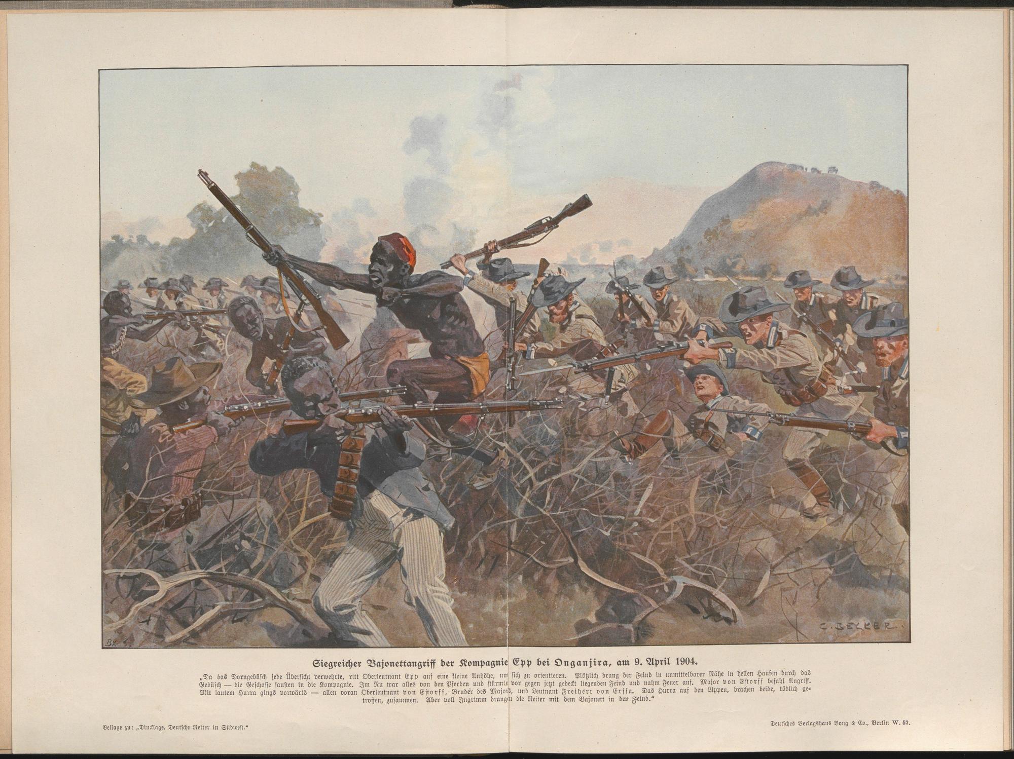Siegreicher Bajonettangriff der Kompagnie Epp bei Onganjira, am 9. April 1904.